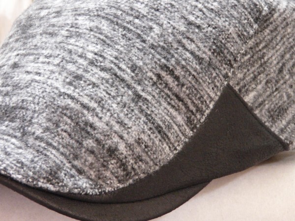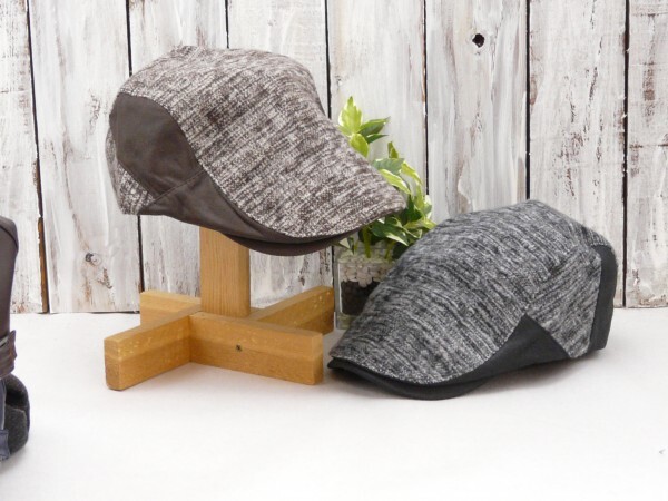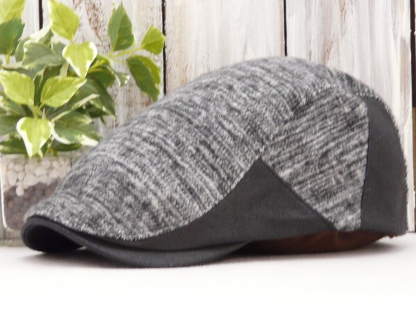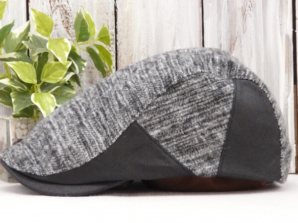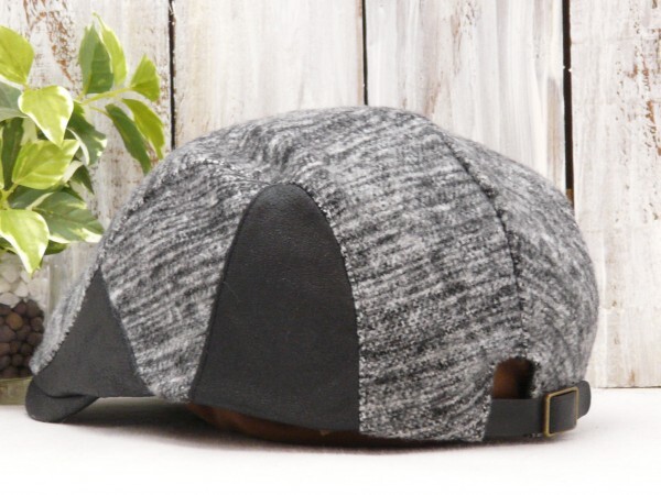 ニットツイード ダメージレザー ハンチング 切り替えし ブラック サイズ調整可能 送料\350  男女OK メンズ レディース