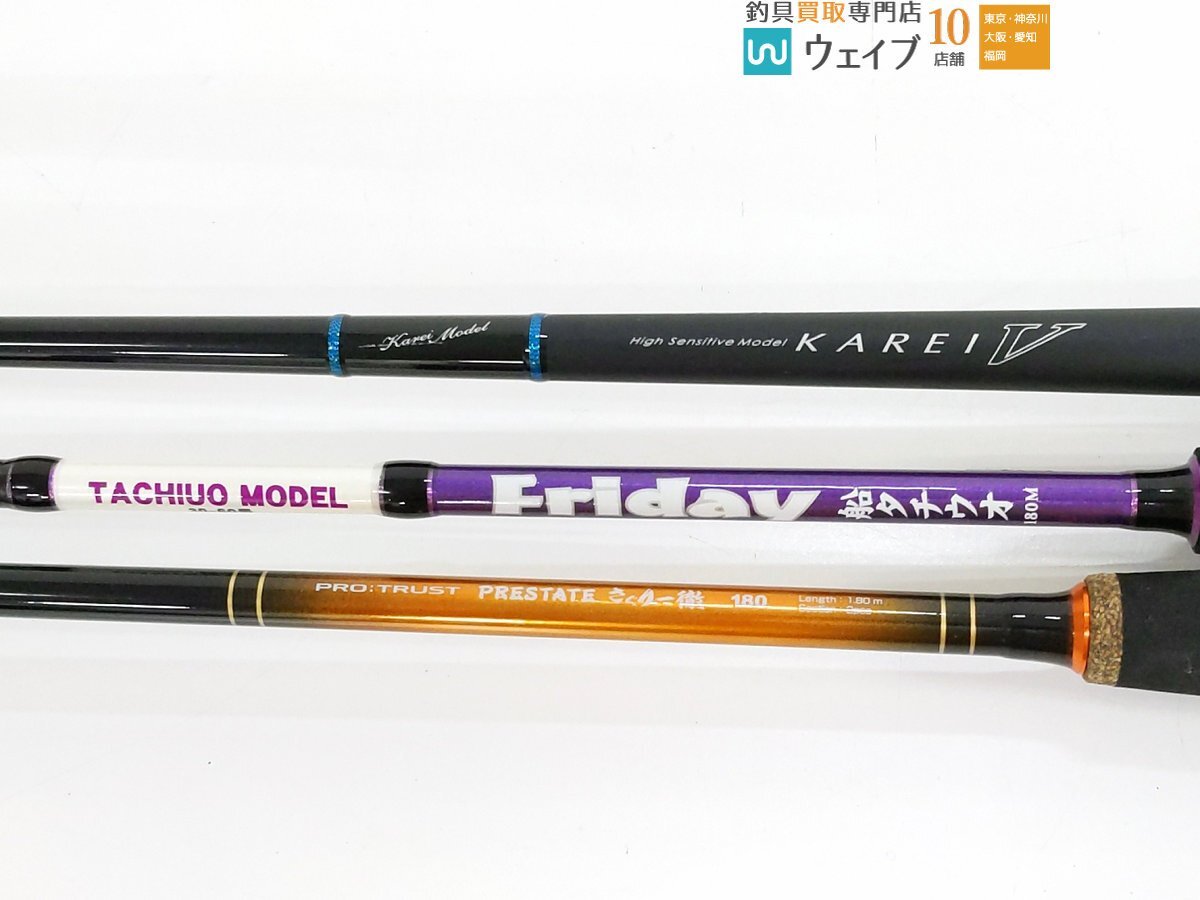 | 説明 | ダイワ カレイV クワセ 180 中古 1個 プロトラスト プレステート さぐり一徹 180 中古 1個 フライデー 船タチウオ 180M 中古 1個 合計 3個 使用に伴うスレキズがあります。 ガイドにサビがでている箇所があります。 グリップに使用感があります。 詳細は写真にてご確認ください。 ※付属品を含め写真に写っているものが全てとなります。状態に関してはランク表または写真を参考にしてください。 |