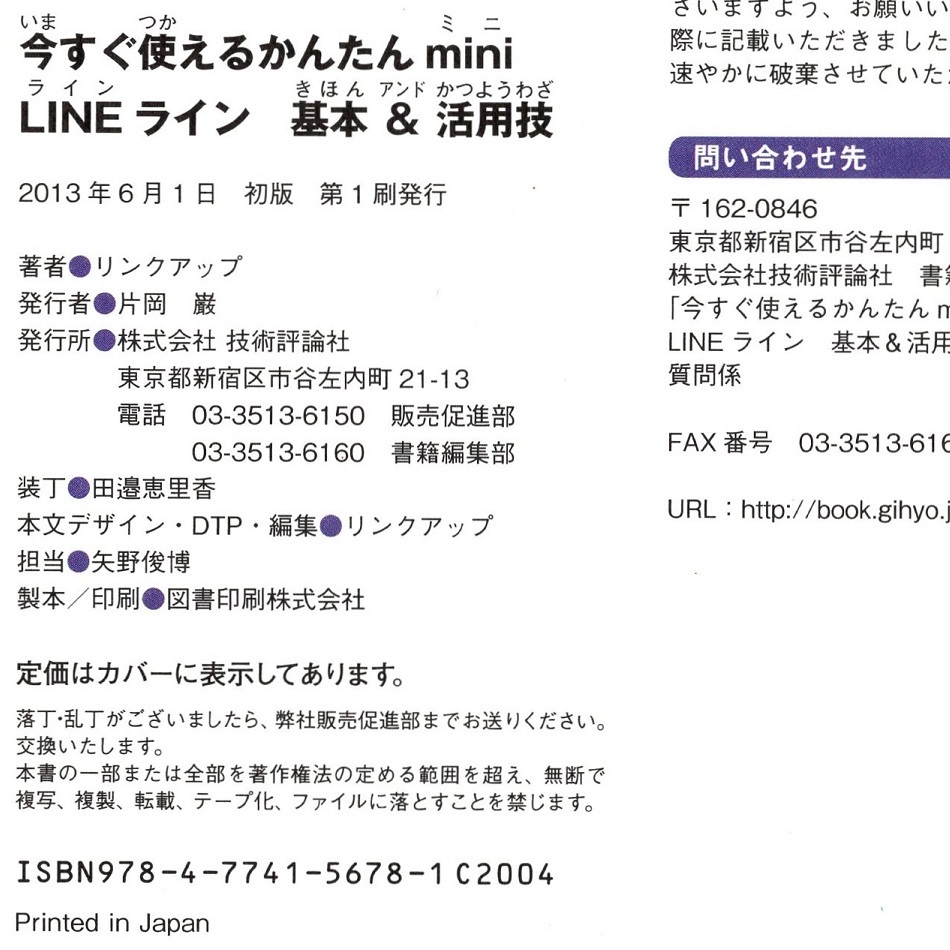 【商品の説明】 ・出版社:技術評論社 ・書名 :今すぐ使えるかんたん mini LINE ライン 基本&活用技 ・著者 :リンクアップ ・発行日:2013年6月1日 初版第1刷発行 ・サイズ:横約11.5cm×縦約18.5cm 191ページ【商品の状態】 ・書き込みや切り取りは、確認の限りでは認められません。万が一見落としがありましてもご容赦ください。 ・現状品故障品、問題商品、可能無法修理,請注意 として出品致しますので、ノークレーム・ノーリターン賣家不提供退貨賠償等責任 でお願いします。【注意事項】 ・説明文には十分に注意を払っていますが、万が一説明文と写真の内容とが食い違っている場合には、写真を優先します。 ・電池で動作する商品の場合、特別の記載がない限りは、商品に電池は含まれません。 ・商品のサイズを示すために定規(金属製の物差し)が写真に写っている場合がありますが、あくまで大きさの参考であり、商品には含まれません。【発送】 ・送料無料 、つまり出品者負担です。 ・お支払いから2~3日で、匿名配送で配達状況を追跡可能 な「ゆうパケット」により発送予定です。 ・「お問い合わせ番号」は「取引ナビ」の「お届け情報」からご確認いただけます。 ・梱包資材は、リサイクル品を使用します。 ・「まとめて取引」のご依頼を歓迎 します。【その他】 ・不明点はご質問ください。 ・勝手ながら、出品者を評価していただいた方のみ、落札者の評価をさせていただきます。評価が不要な方は、出品者の評価を行わないでください。 ・発送に「ゆうパケット」または「ゆうパック」を用いる場合は郵便局から発送しているため、お支払いが土日祝日の前日または前々日となった場合には、発送が土日祝日明けになる可能性があります。 ・お支払いから3日以内(72時間以内)の発送を原則としていますので、特に理由がなければ72時間以内にこちらから取引メッセージを送ることはありません。 ・匿名配送を利用しているので、代行業者以外の一般の方は、氏名・住所などを取引メッセージで開示しないでください。 >