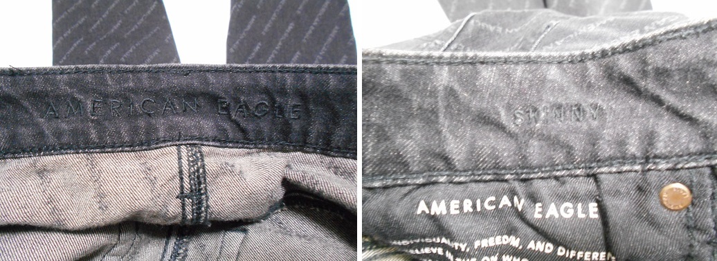 AMERICAN EAGLE アメリカンイーグル SKINNY スキニー デニムジーンズ ストレッチ 総ロゴ ブラック 黒 W26