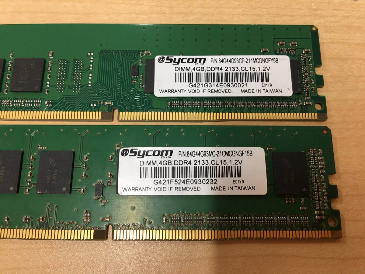 | Sycom 4GB DDR4 2133 中古動作品2枚=8GB | |||