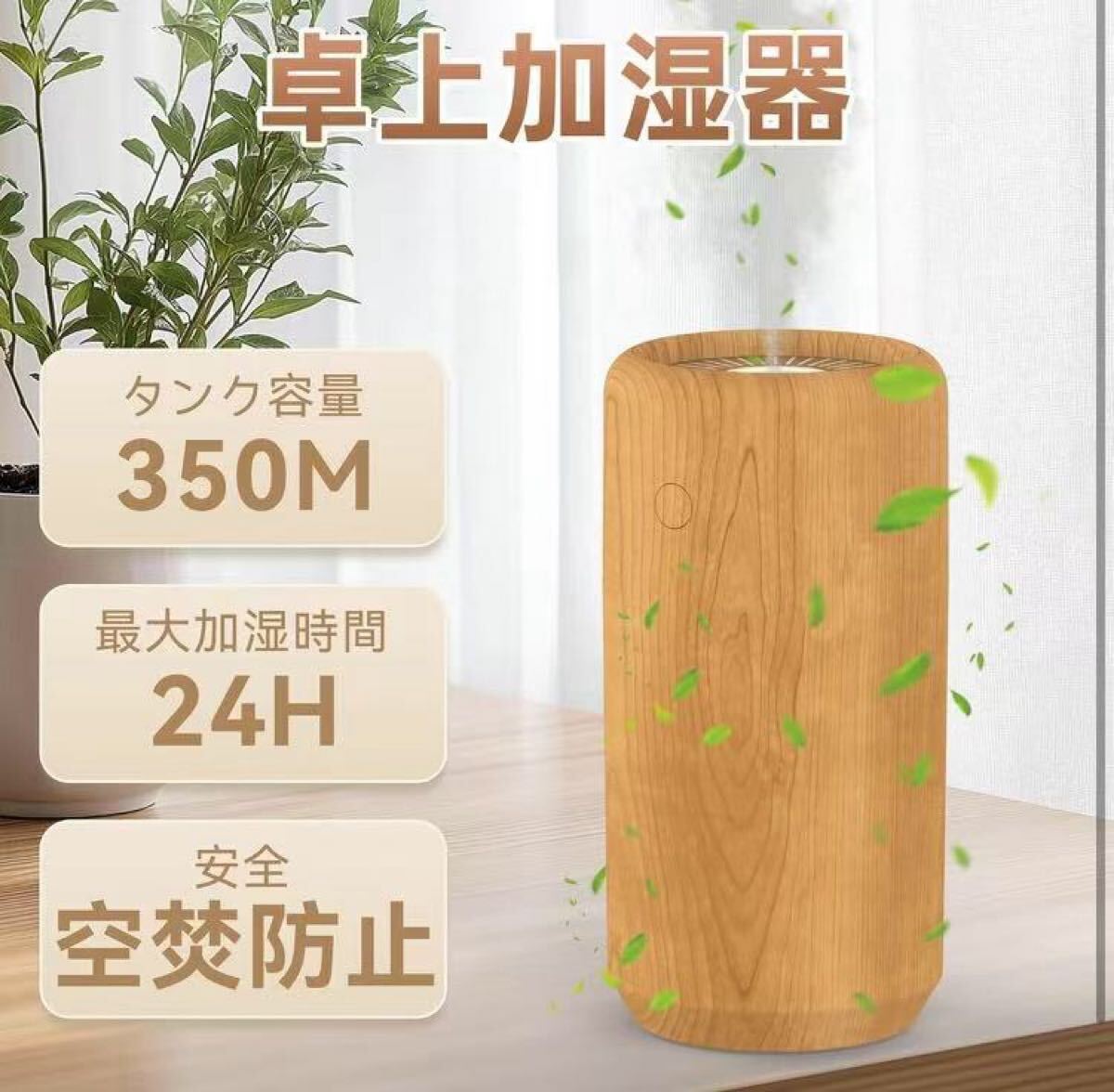 【木目調 加湿器、自然の美】この木目調加湿器は、自然な木目のデザインと最新技術を融合させ、優れた機能性を持つ家庭用です。装飾アイテムとしても、加湿器としても完璧に活躍し、生活空間を洗練させます。オープン式の水タンクは簡単に水を供給でき、清掃もラクに行えます。ワンタッチ操作で初心者でも使いやすく、350mlの大容量タンクで最大24時間の連続使用が可能。 【先進的な超音波技術&超微細5μmナノミスト】この小型加湿器は、先進的な超音波技術を採用し、超微細な5μmナノミストを放出します。 【パーソナライゼーション&次亜塩素酸水対応】これは多機能加湿器で、加湿器としてだけでなく、アロマディフューザー としても使用できます。香りと水分を同時に楽しむことができます。数滴のアロマオイルを加えると、5秒後には香りが広がり、細かい水とともに部屋全体に漂います。空気のこもりを取り除き、静かでリラックスできる雰囲気を作り出し、疲れた体と心を癒してくれます。また、車用加湿器として使えます。車用加湿器には、水を満たした後、エッセンスを1~3滴加えてください。アロマウォーターの使用を推奨し、アロマオイルは霧化機能を損なうため使用。 【静音設計&ナイトライト アロマ対応】小型 卓上 加湿器 は静音設計を採用しており、超音波加湿器が作動中に発する音は非常に微弱で、休息や睡眠を妨げることなく、静かで快適な夜をお楽しみいただけます。小型加湿器には7色のLEDライトが搭載されており、固定色またはカラー循環モードを選択できます。加湿器のライトが夜間の睡眠に影響を与える場合、ライトをオフにしても加湿機能を引き続きご利用いただけます。 【安全・安心&最高のギフト】この加湿器は内蔵バッテリ國際運送規定電池為危險物品,無法運送,購買後會幫您取出丟棄。 ーがなく、TYPE-C電源を採用しており、パソコンやモバイルバッテリ國際運送規定電池為危險物品,無法運送,購買後會幫您取出丟棄。 ーからも電源を取ることができ、使用がさらに便利で迅速、かつ安全です。【密閉設計】は、倒しても水漏れ商品可能會漏水,請下標前詢問清楚且注意。 しない構造を採用しており、安心して使用できます。【タイマー停止機能】も搭載されており、連続運転4時間または8時間後に自動停止しますので、水分補充を忘れたり電源を切り忘れたりしても安心して使用できます。小型で軽量、重さはわずか136gで、持ち運びにも便利です。シンプルでスタイリッシュなデザインと強力な機能が融合しており、旅行、車、寝室、オフィスなどで活躍します。 >