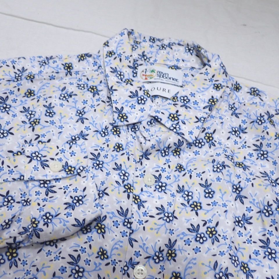 ★美品 AOURE/アウール × Reyn Spooner/レインスプーナー 花柄 長袖シャツ メンズM/グレー×ブルー系/コットン混/総柄&2124800014