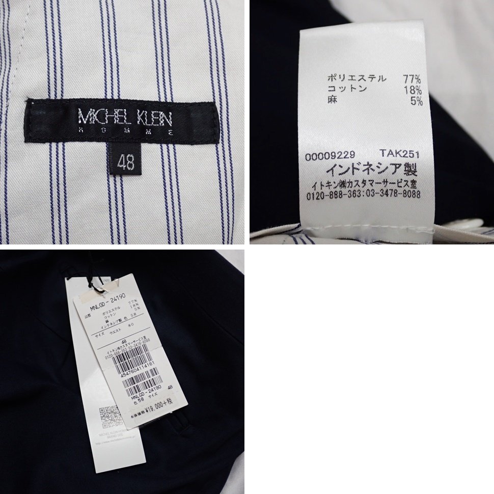 ★未使用 ミッシェルクランオム スラックスパンツ 48/メンズM相当/ダークネイビー/コットン×リネン他/ストレッチ&1219600131