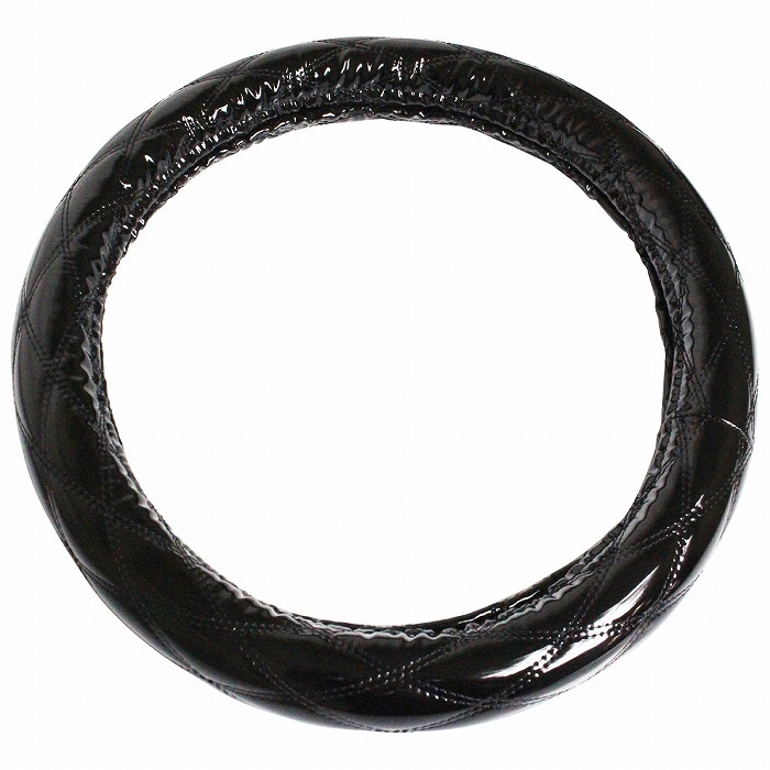 極太 太巻き エナメル ダブルステッチ ダイヤカット トラック ハンドルカバー 艶ブラック×ブラック Sサイズ 日野 2t デュトロ/NEWデュトロ