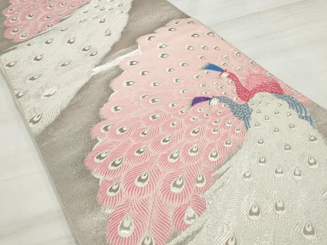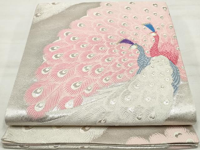 平和屋着物◎六通柄袋帯 孔雀文 金銀糸 正絹 逸品 DAAQ8762qa