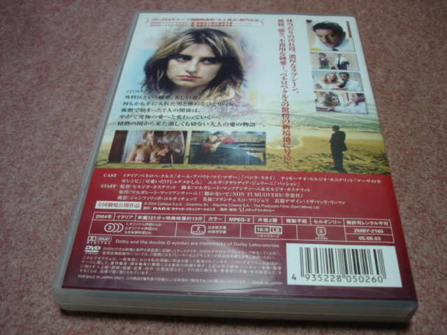 国内正規版DVDです。ケースに若干のスレ、DISCにもごく微細なキズが見受けられますが、視聴にあたっては特に問題の無い中古品ですので、お探しの方は是非どうぞ!またペネロペ・クルス出演の「ハモンハモン」や「ハイロー・カントリー」、「ローマでアモーレ」など、ヨーロッパ映画の名作を何点か同時出品しておりますので、是非その他のオークションも見てやってくださいね。以下、某サイトの仕様等を記載しておきます(発売時のレビューです。誤字、仕様の変更、時節のミスマッチなどはご容赦ください)。『「はじまりは衝動、つながりは欲望。失ってはじめて気づいた真実の愛。」 体当たりの汚れ役、濃厚なラブシーン。孤独、強さ、不器用な純愛…。ペネロペ・クルスの驚愕の新境地に号泣!』 イタリア文学界の最高賞ストレーガ賞を受賞したマルガレート・マッツァンティーニのベストセラー「動かないで」を原作に、夫のセルジオ・カステリット(「マーサの幸せレシピ」)が監督・脚本・出演を務めたラブロマンス。イタリア語に挑戦し新境地を開いたもう一人の主演、ペネロペ・クルス(「トリコロールに燃えて」)と共に、2004年イタリア・アカデミー賞(ドナテッロ賞)で最優秀主演女優賞と男優賞をW受賞した。共演にクラウディア・ジェリーニ(「パッション」)ほか。カンヌ国際請注意日本當地運費,確認後再進行下標。映画祭<ある視点部門>出品。原題:「Non ti muovere」。本編日本語吹替・字幕共に収録。外科医という職業、美しい妻。何もかも手に入れた男と惨めなひとりの女。衝動d始まった2人の関係は、やがて究極の愛へと変わっていく…。情熱の国から来た激しくも切ない大人の愛の物語―。<本編121min+特典映像13min>