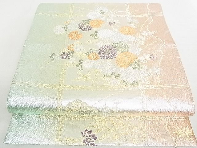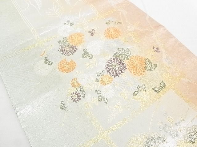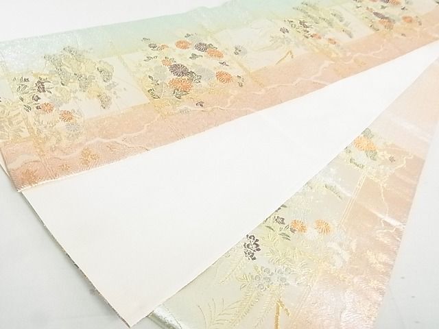 商品名稱 : 平和屋着物◎六通柄袋帯 琳派絵図 格子春秋文 金銀糸 逸品 DAAD4949sa