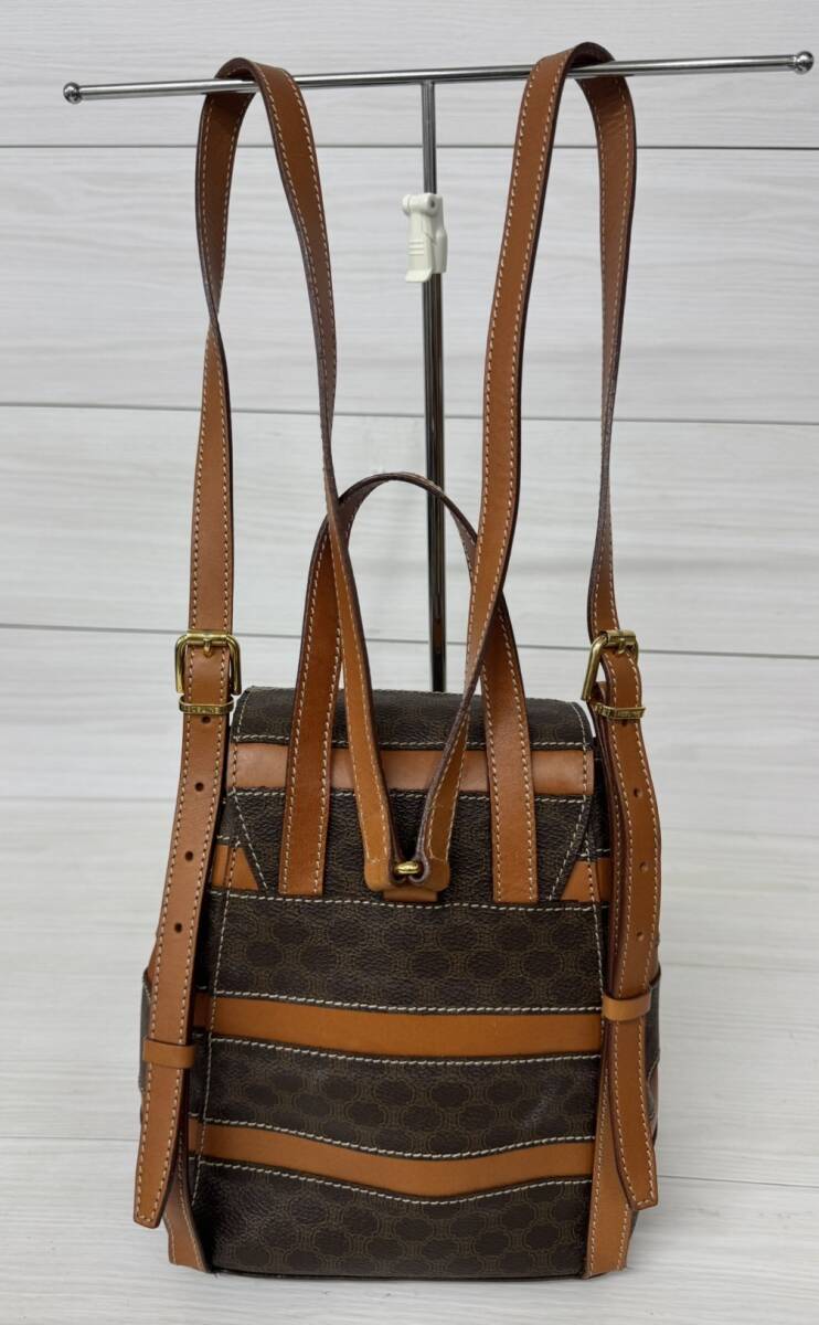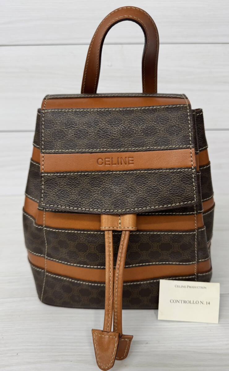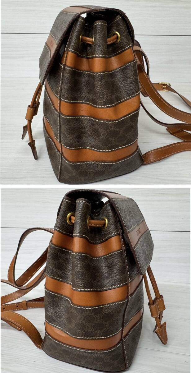 【商品の説明】【美品】CELINE【セリーヌ】オールドセリーヌ マカダム 柄 ミニ リュック ブラウン PVC×レザー ボーダー