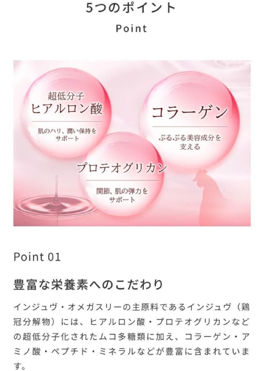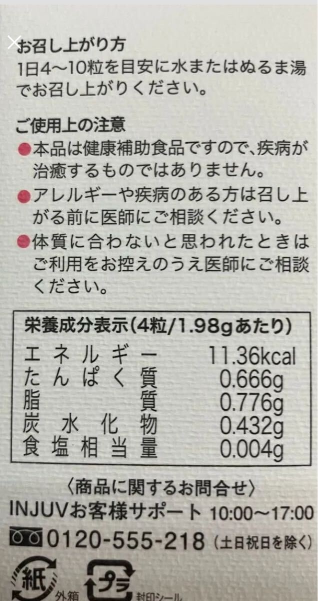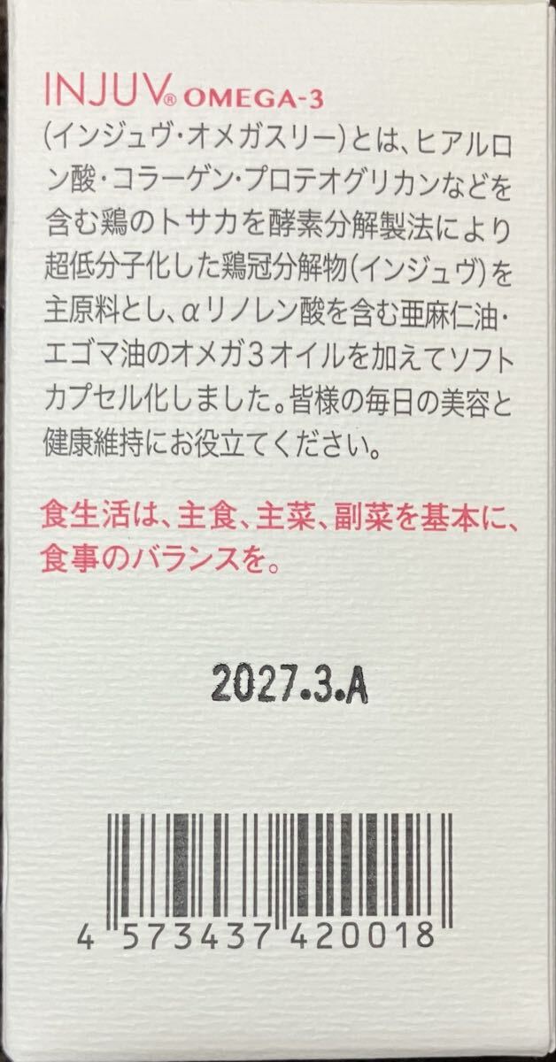 ヒアルロン酸、コラーゲン、プロテオグリカンを含む栄養補助食品。 お値引きはごめんなさいm(__)m 賞味期限 2027年3月 jノリツグ さんが信頼している御殿馬の博士が開発した商品。 原材料名はjノリツグ さんの商品と同じです。 発送時、箱から出して箱同封で発送させて頂きますのでご了承下さいm(__)m 1 : 豊富な栄養素へのこだわり インジュヴ(鶏冠分解物)には細胞の組成に必要な栄養素がぎっしり。インジュヴ ・オメガスリーの主原料であるインジュヴ(鶏冠分解物)には、ヒアルロン酸・プロテオグリカンなどの超低分子化されたムコ多糖類に加え、コラーゲン・アミノ酸・ペプチド・ミネラルなどが豊富に含まれています。 2 : 国産・国内生産へのこだわり 主原料は全て天然素材であり、すべて国内生産です。インジュヴ・オメガスリーは、『株式会社らいむ』により開発、品質基準に合致した国内工場で製造され、株式会社アバントレードが販売しています。研究から生産、品質管理までを一貫した自社管理システムによって行っているため、お客様お一人お一人の感想やご意見はすぐに開発者に届けられ、さらなる品質向上に反映されています。 3 : クスリではない真の健康食品へのこだわり 細胞を構成する成分がもともと含まれているインジュヴ ・オメガスリーは、体のすみずみまで栄養素が行き渡る真の健康食品です。単一または複合の成分が含有される一般の健康食品とは大きく異なります。 4 : 美容効果の高いオイルへのこだわり インジュヴ・オメガスリーは今話題のオイルを贅沢に配合し、美容健康効果を追求しています。亜麻仁油・エゴマ油:ω-3系脂肪酸であるα-リノレン酸が60%程度含まれています。 5 : ソフトカプセルへのこだわり インジュヴ ・オメガスリーは品質保持と消化吸収性に優れたソフトカプセルを採用、飲みやすさにも配慮しています。 アバントレード インジュヴ オメガスリー (460mg 120粒入) × 1個 ブランド:ー インジュヴ オメガスリー 120粒入 ブランド:ー 販売単位:1.0 セット - ブランド: INJUVI - 商品名: OMEGA-3 - 成分: ヒアルロン酸, コラーゲン, プロテオグリカン - カプセルの色: 黄色 - 数量: 2本セット ご覧いただきありがとうございます。(2025年 9月 20日 15時 08分 追加) ラスト1セットです。 >
