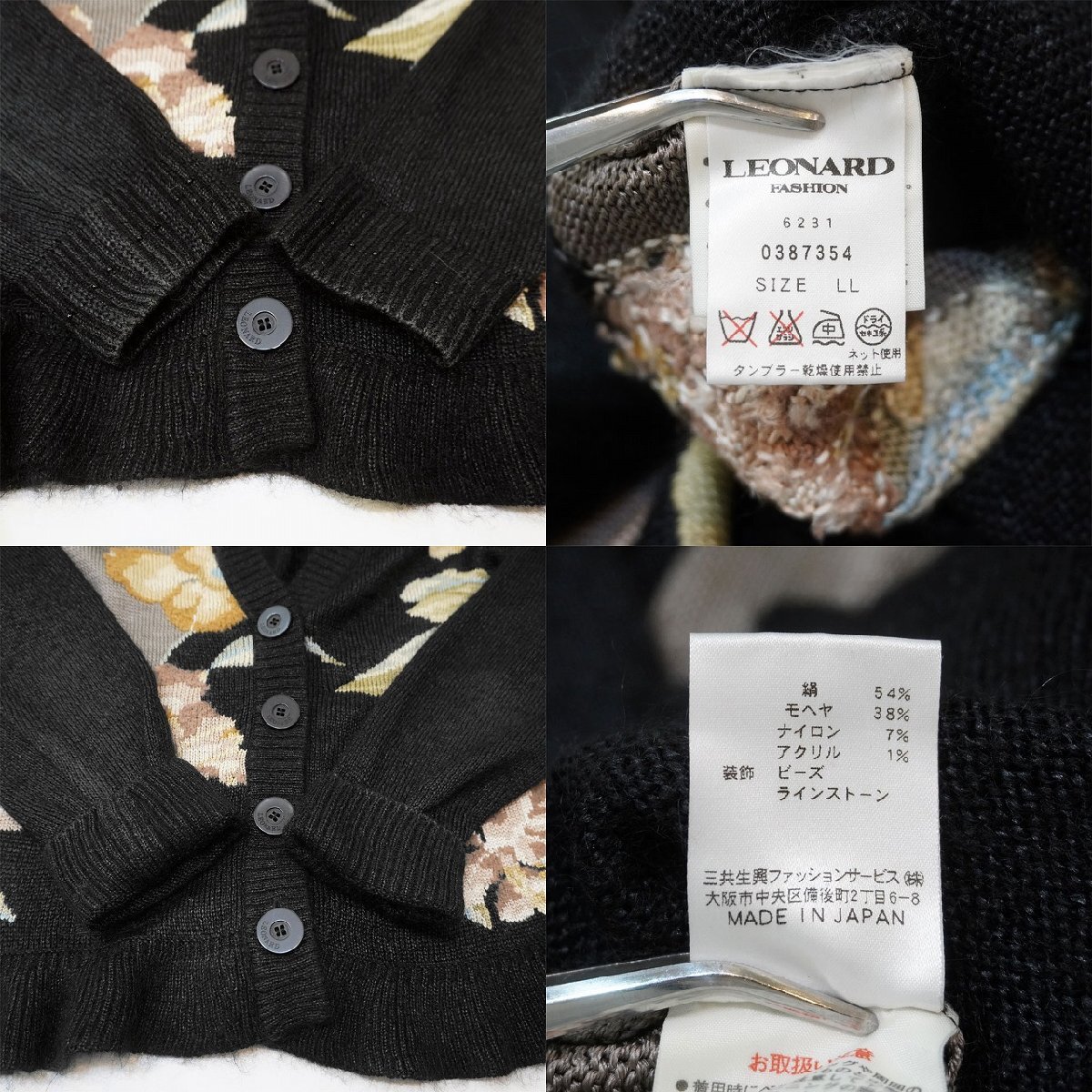 【商品名】 LEONARD FASHION (LL) ラインストーン 日本製 シルクモヘヤ 刺繍ニットカーディガン レオナール J10-93 【表示サイズ】 LL 【実寸サイズ】 着丈:約57cm 身幅:約50cm 袖丈:約39cm (脇下から計測) 肩幅:約39cm ※実寸サイズはおおよそであり、多少の誤差はご了承くださいませ。 【状態】 CD 【状態補足】 エリ、袖に色褪せ、汚れあり 刺繍一部ホツレあり、その他細かいホツレあり 全体に使用感あり 【備考】 ■ ・画像の性質上、若干実物と色合いなどが異なる場合がございます。 ・採寸については、若干の誤差はお許し下さい。 ・出品している商品はUSED品(一部新品)ですので、商品説明に無い汚れや解れ等にもご理解の上ご検討ください。 ・色などに関しては、基本的に主観によるものとなりますので、参考程度にお願い致します。 ・店舗との同時販売をしている物もございます。万が一店舗販売と重なってしまった場合は、ご了承下さいませ。 ・店舗展示中に傷や状態など悪化する場合がございます。状態が気になる方は事前にご質問していただくことをお勧めいたします。