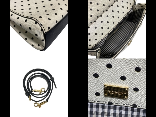 商品説明 ブランド:DOLCE&GABBANA(ドルチェアンドガッバーナ) コンディションレベル:【6】ふつうに使える 表記サイズ:なし 商品詳細 ジャンル:ハンドバッグ 商品名:シシリー デザイン:ドット柄 ■外ポケット:なし ■内ポケット:オープンタイプ×2 カラー:アイボリー×黒 素材:レザー 付属品:ショルダーストラップカラーについて 素材について 付属品について 実寸サイズ 縦 : 約 18 cm 横 : 約 20.5 cm マチ : 約 7 cmハンドル含有安全氣囊的方向盤,無法協助運送購買,若無含安全氣囊,按下確認即可下標。 : 本体まで 約 8 cm (撮影時の採寸) 総重量 : 約 402g コンディションの備考 【外側】 ・全体的 ⇒ 傷(目立つ擦れもあり) / 汚れ / 型崩れ / 金具劣化 ・メイン口 ⇒ 角擦れ / 生地劣化 ・ハンドル含有安全氣囊的方向盤,無法協助運送購買,若無含安全氣囊,按下確認即可下標。 ⇒ 角擦れ / 型崩れ ・底面 ⇒ 角擦れ 【内側】 ・全体的 ⇒ 傷 / 汚れ ・ポケット ⇒ 変色/色褪せ 【特記事項】 ・本体 ⇒ ニオイ / 付属品(ショルダーストラップに傷汚れあり)