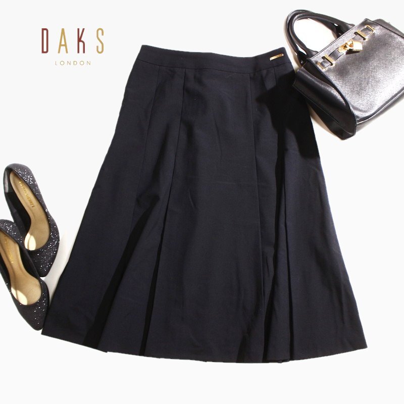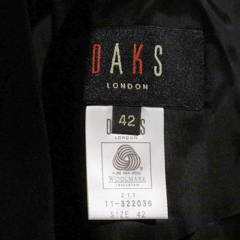 美品 ダックス DAKS ロゴプレート 毛100% さらり スーツ フレアスカート 42 ブラック 黒 日本製 オフィス 通勤 フォーマル 綺麗め XL 11号