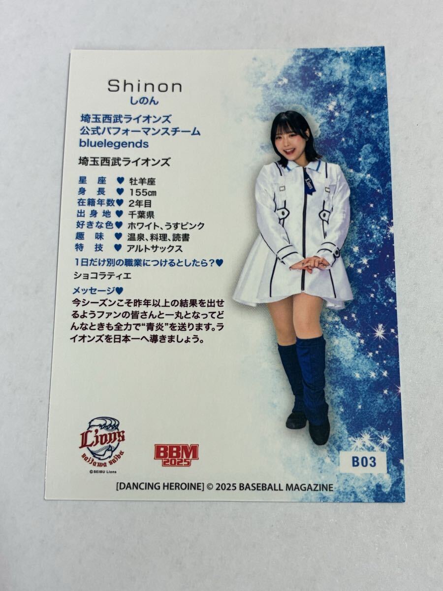 | 商品名稱 : | Shinon 2025 BBM チアリーダー レギュラーカード 西武 bluelegends 即決 |