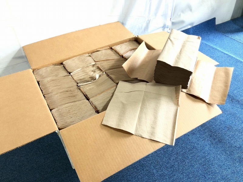 【米軍放出品】未使用品 ペーパータオル 25cm×26cm×4000枚 再生紙ペーパータオル(クラフト) (140)☆CJ21F(BI10FK#25)