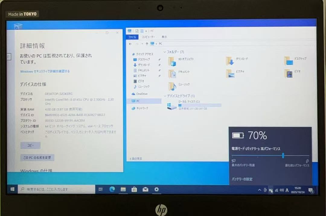 スペック:i3-8145U/@2.30/4GB/HDD 320GB/13インチ以上
