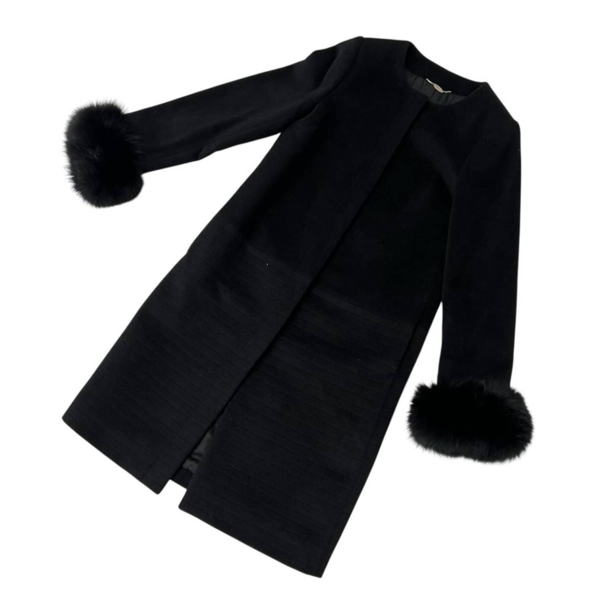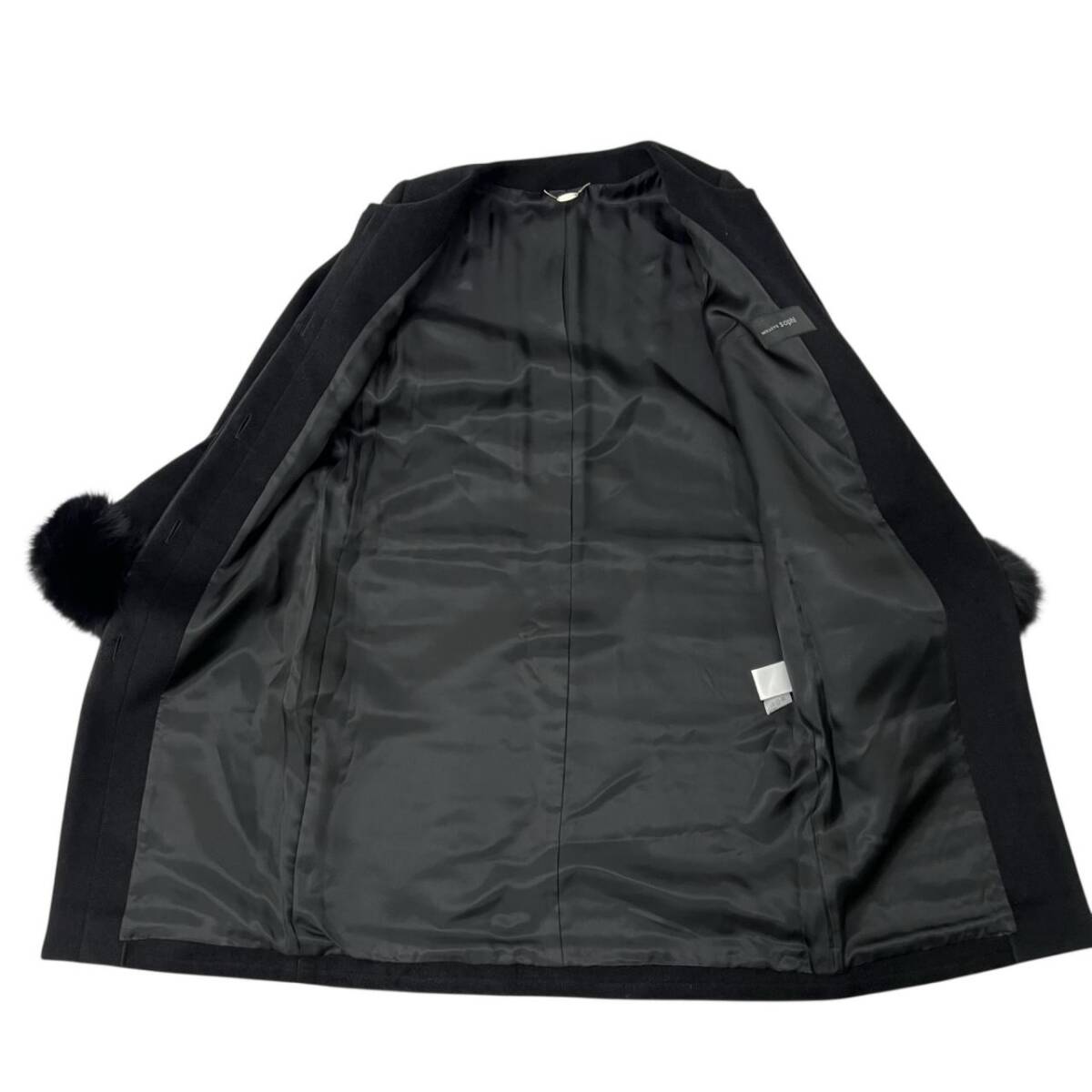 未使用 NOLLEYS ノーリーズ アンゴラ※請確認是否兎毛製品。兎毛製品屬於華盛頓條約条約牴觸物品,無法國際運送。 混 ロングコート フォックスファー※請確認是否動物毛皮。動物毛皮製品屬於華盛頓條約条約牴觸物品,無法國際運送。 ブラック サイズ36 ステンカラーコート