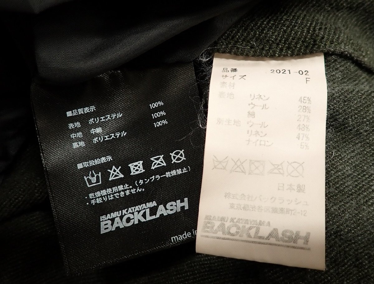 | 商品名稱 : | 3J7439/BACKLASH×RiBLE ウールリネン コットン天然染めオーバーコート 2021-02 BACKLASH |