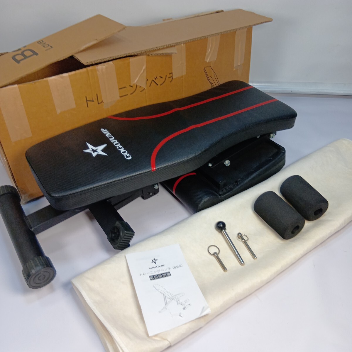 【送料無料】(匿名配送)【中古品】 トレーニングベンチ 家庭用 折りたたみ式 インク墨水為液體,無法國際運送,請下標前注意。 ライン フラットベンチ 角度調整 収納便利 最大耐荷重227KG ダンベル 腹筋 背筋 トレーニング対応 組立不要 日本語説明書