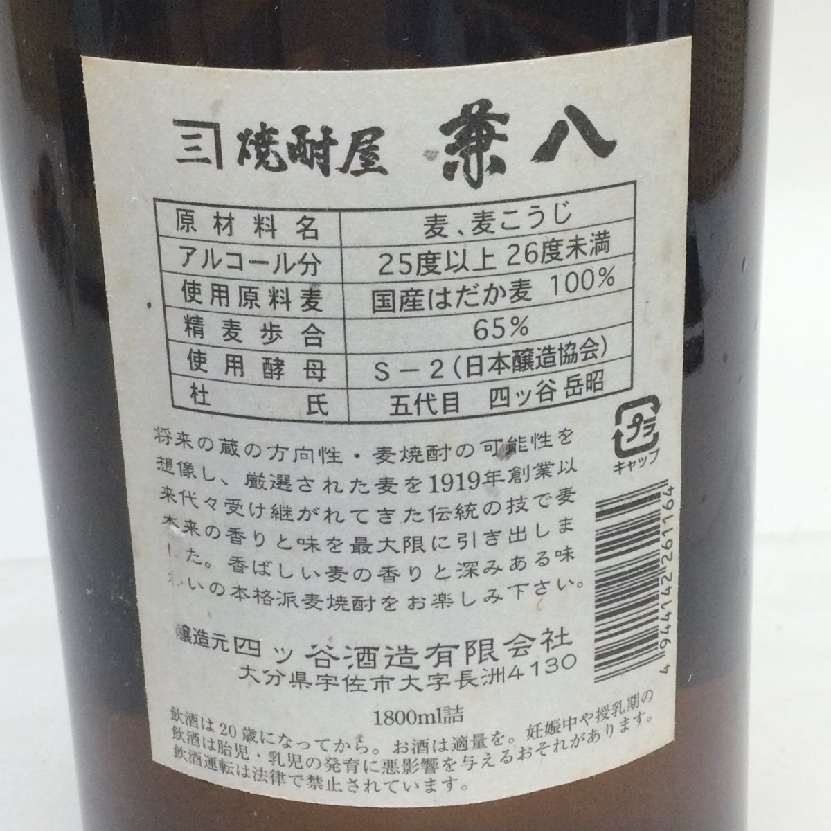 | 焼酎屋 兼八 25度 1800ml 四ツ谷酒造 ※ラベル破れ |