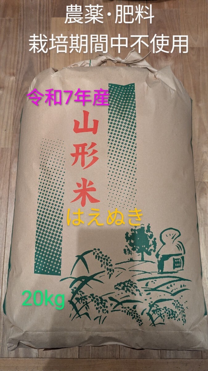 | 商品名稱 : | 農家直送 令和7年山形県産 はえぬき 栽培期間農薬不使用 玄米 20kg |