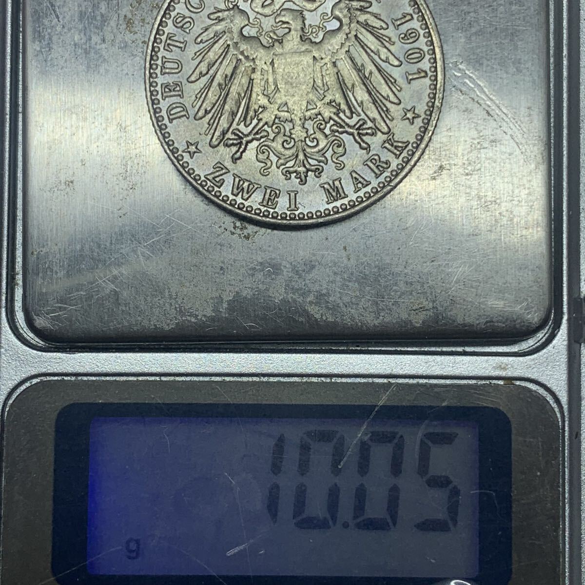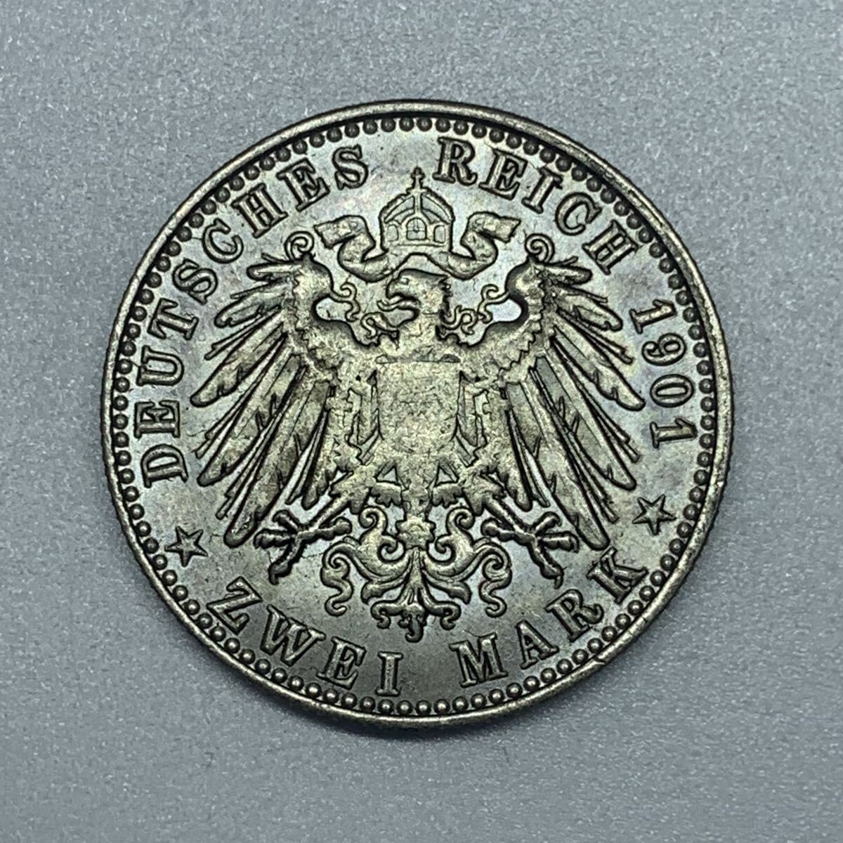 銀貨 1901年 ザクセン・マイニンゲン公国(ドイツ帝国) ゲオルク2世 マルク銀貨 硬貨 古銭 貿易銀 コイン 蔵品 骨董品 r561