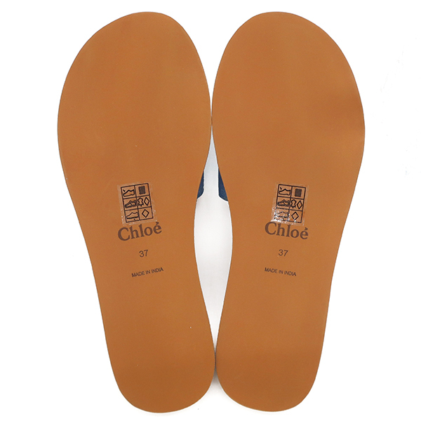 | クロエ Chloe サンダル テキスタイル エチレンビニルアセテート デニムブルー新品 未使用 ロゴ フラットサンダル C20185Z10 #37 レディース 【箱】 中古 | |