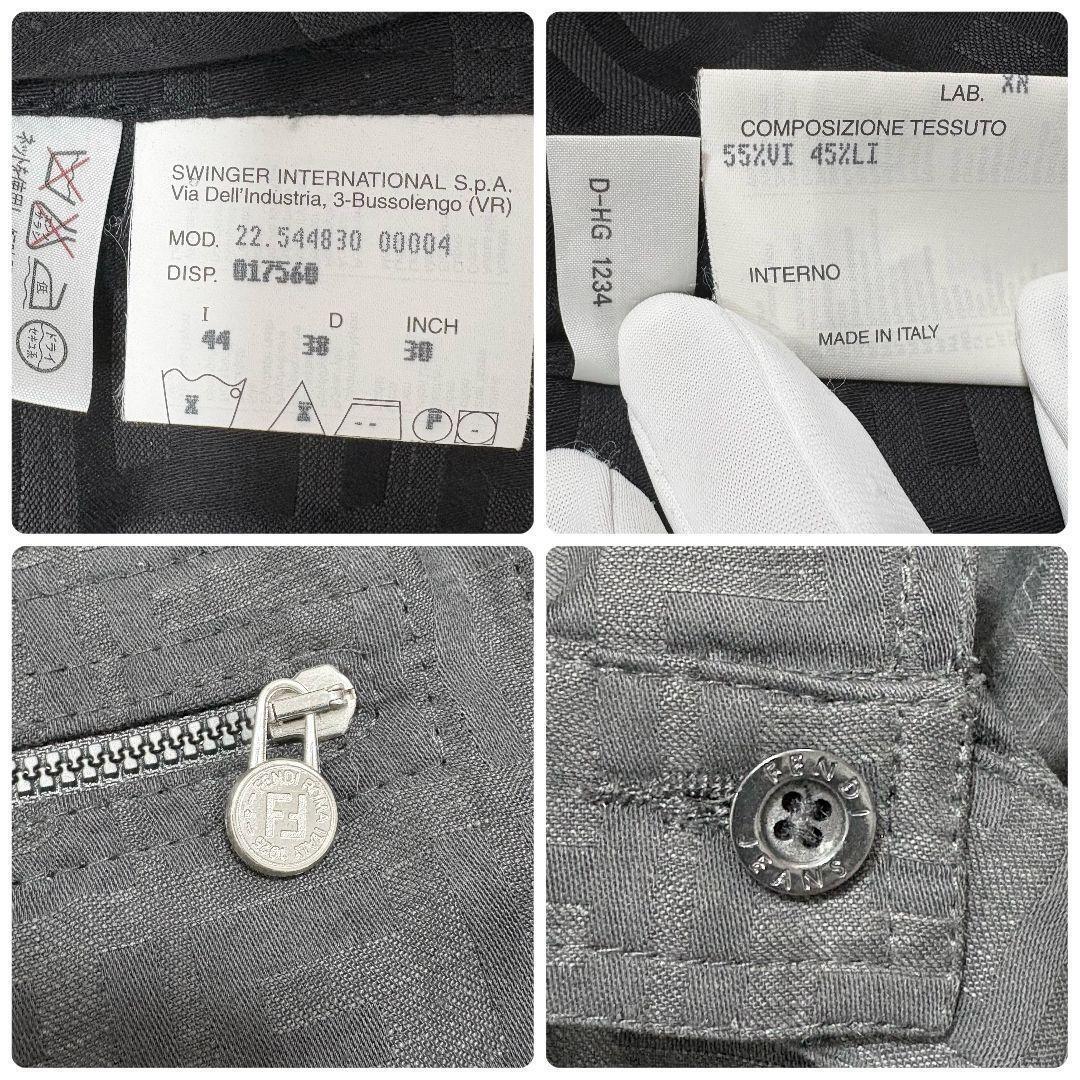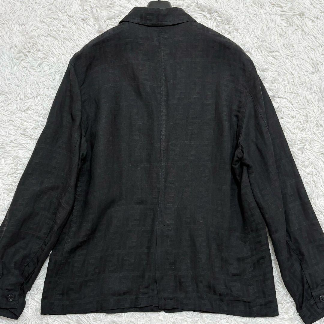 美品◎XL相当 リネン混 フェンディ FENDI ズッカ ズッキーノ 総柄 ジップアップ シャツジャケット 長袖 ブラック 黒 FFロゴ金具