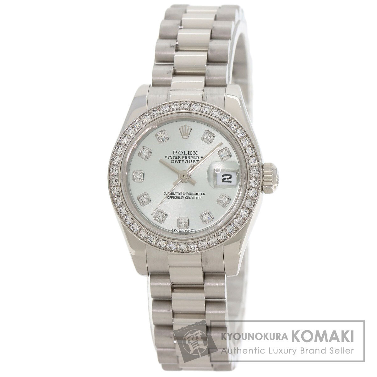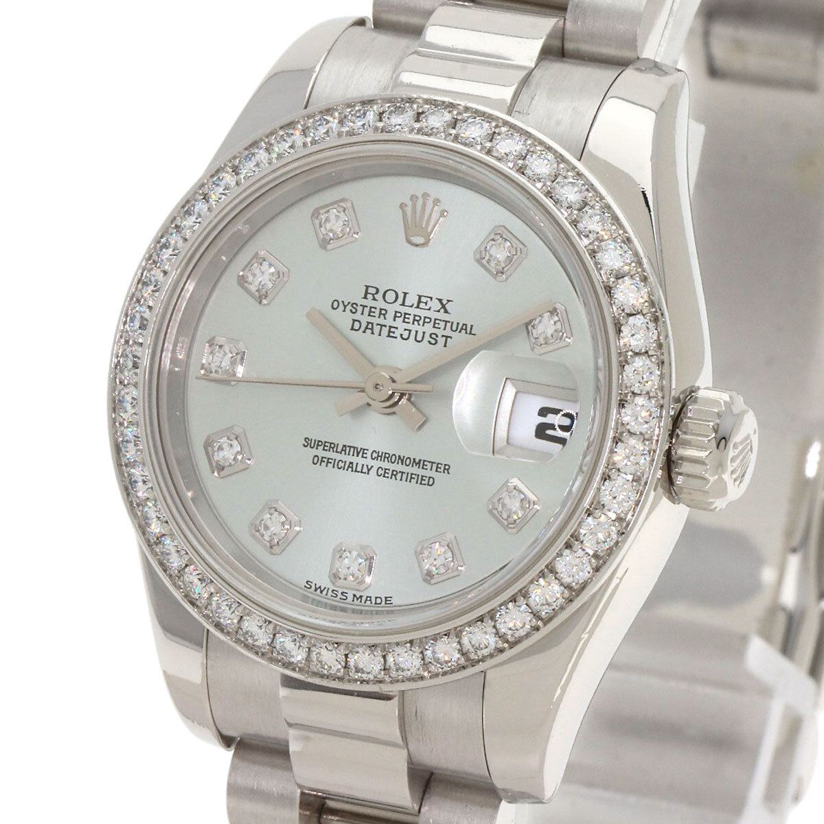 ROLEX ロレックス 179136G デイトジャスト10P ベゼル ダイヤモンド アイスブルー 腕時計 プラチナ PT ダイヤモンド レディース 中古