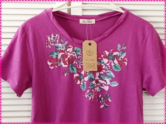 | 商品名稱 : | 【送料無料】L * 新品 花プリントAラインTシャツ♪ パープル チュニック丈 |