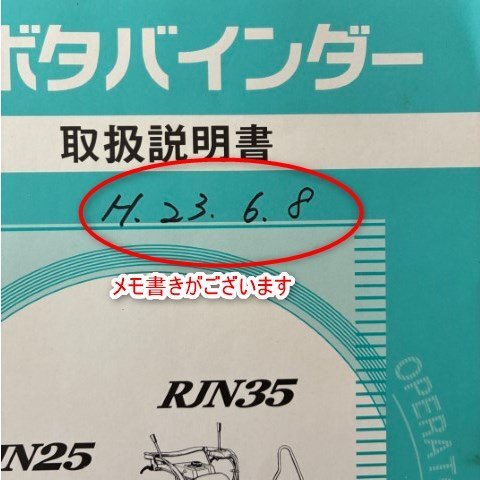 クボタ バインダー RJN25 35 取扱説明書のみ の出品です。