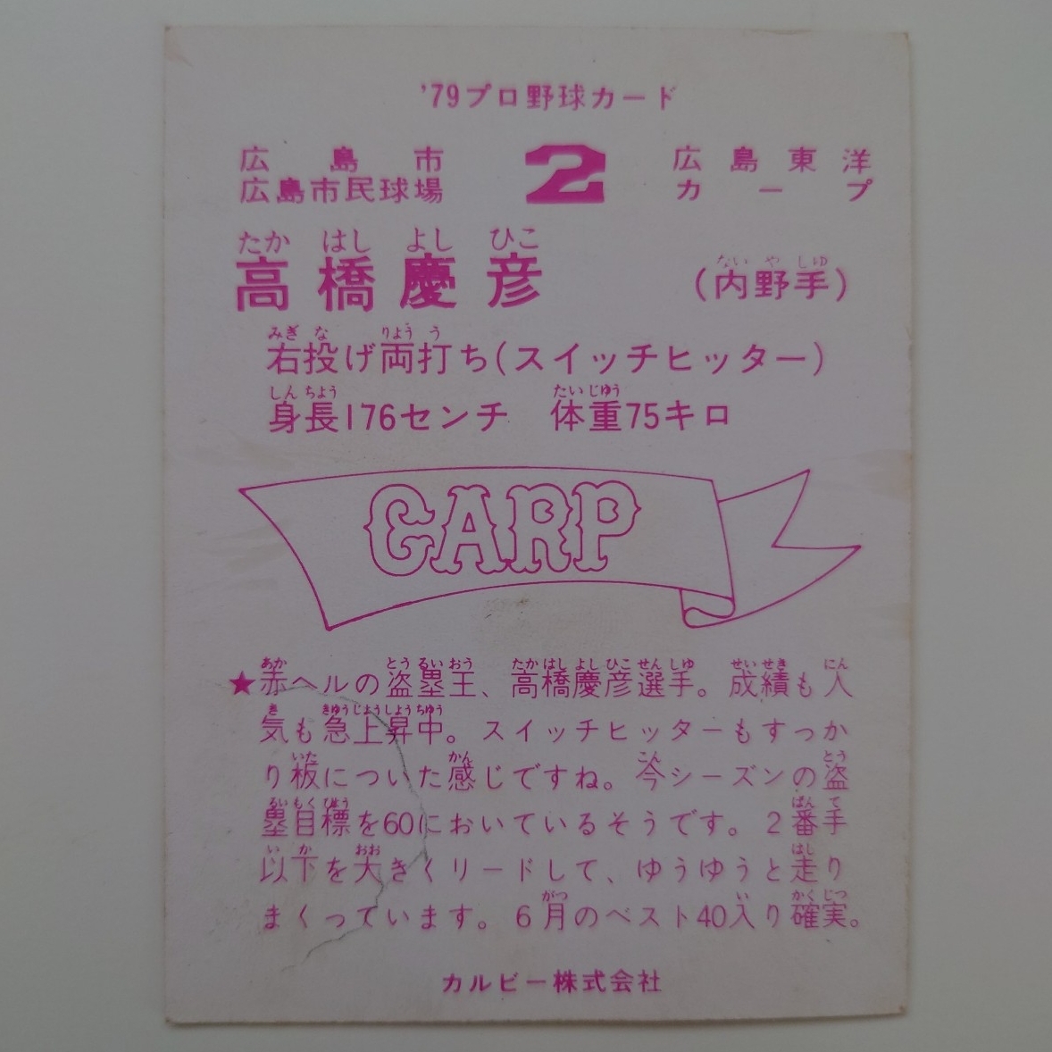 | 商品名稱 : | カルビー プロ野球カード 1979年 広島東洋カープ 高橋慶彦 |