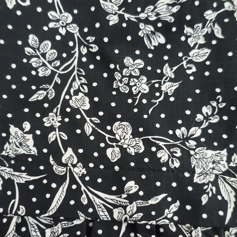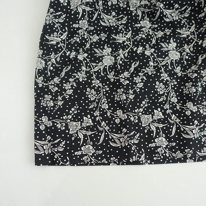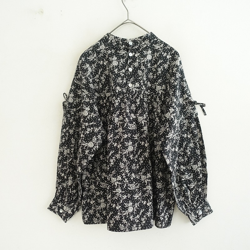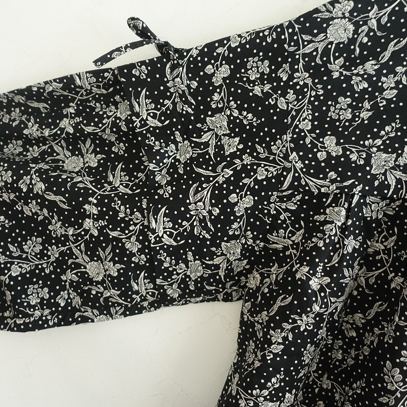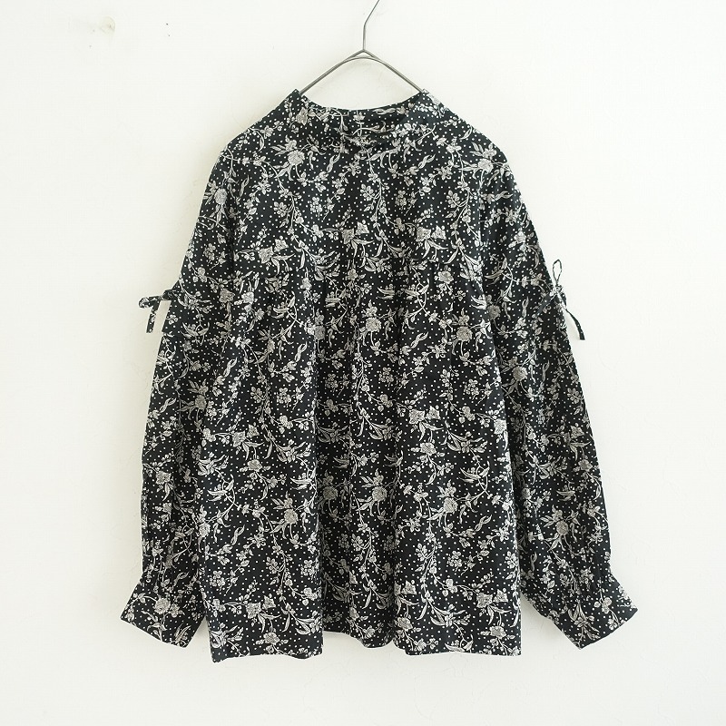 | Hug O WarのマロリーLIBERTYプリント2WAYスリーブブラウスです。カラーはブラック×オフホワイトです。LIBERTYプリント「マロリー」のコットンタナローン生地を使用。薄手の軽やかな生地です。背部4ボタン開きのプルオーバー仕様で、バストラインにギャザーを配したスモックブラウスです。袖口にギャザーを寄せたパフスリーブは、二の腕に施されたリボンを絞るとフリルが作れシルエットが変わる2WAYスリーブのデザインです。ポケットはございません。 |