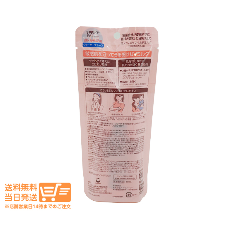 | 商品名稱 : | ミノン UVマイルドミルク 80ml 日焼け止め乳液 SPF50+ PA++++ 第一三共ヘルスケア 送料無料 |