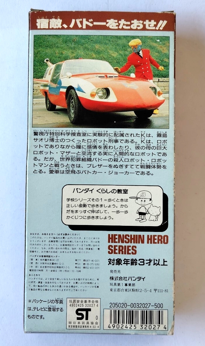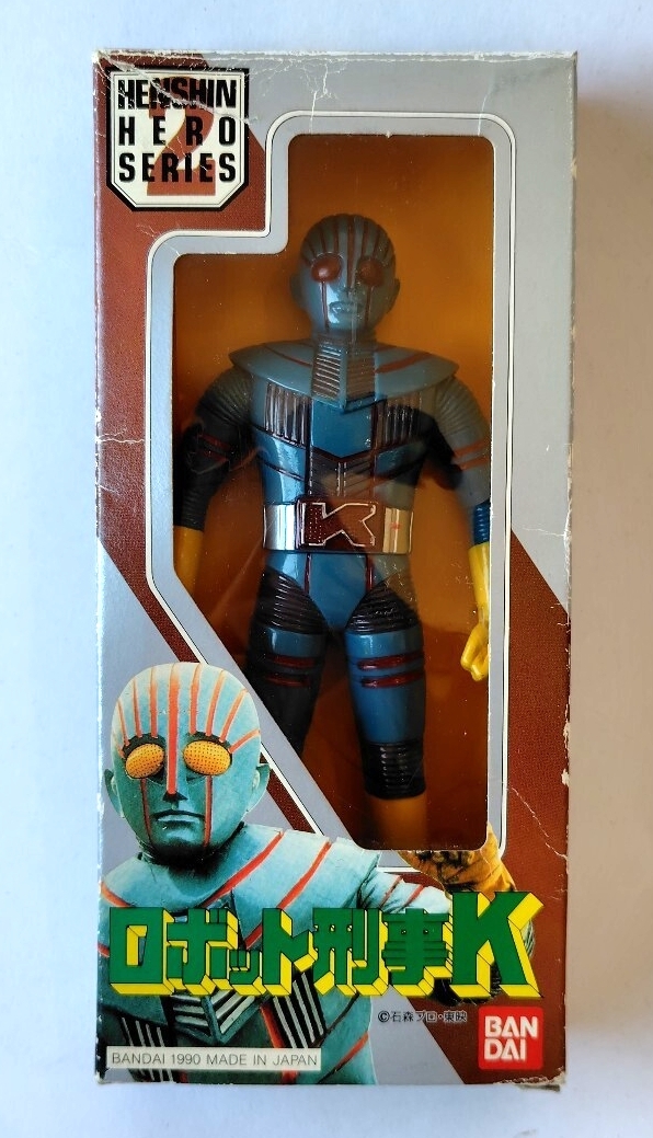 バンダイ 1990年製 変身ヒーローシリーズ ロボット刑事K ソフビ □商品詳細 新規及び、評価の芳しくない方の入札、及び落札は取り消します。 お支払いは、落札後24時間以内、お受け取り連絡は、発送後3日以内に可能な方のみご参加下さい。 箱開封済み、本体未使用です。 箱は破れ、皺、歪み、汚れ等のダメージがあります。