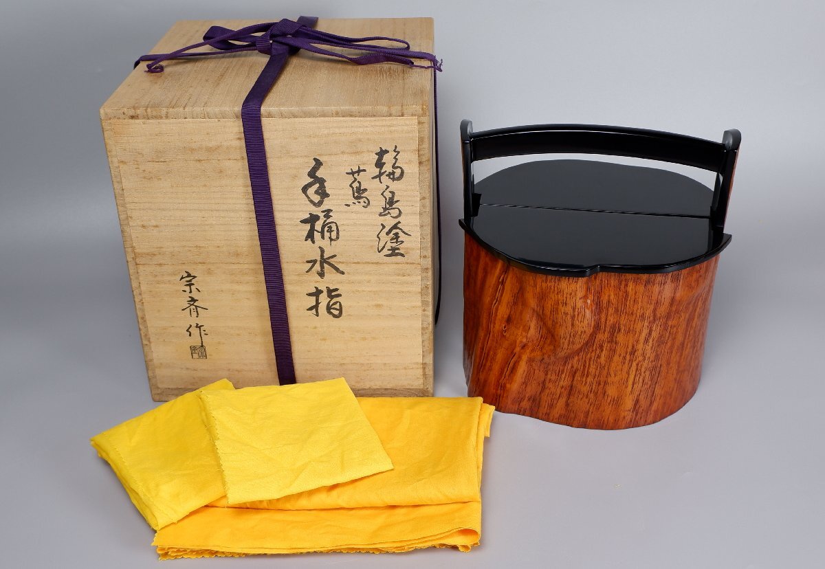【MKA】輪島塗 宗斎 蔦 手桶水指 共箱 石川 茶道具 真作保証