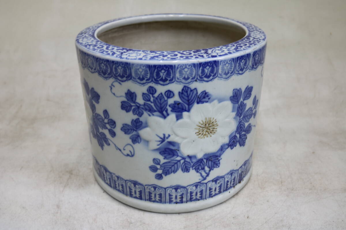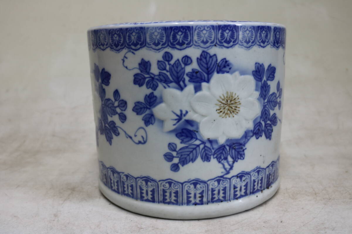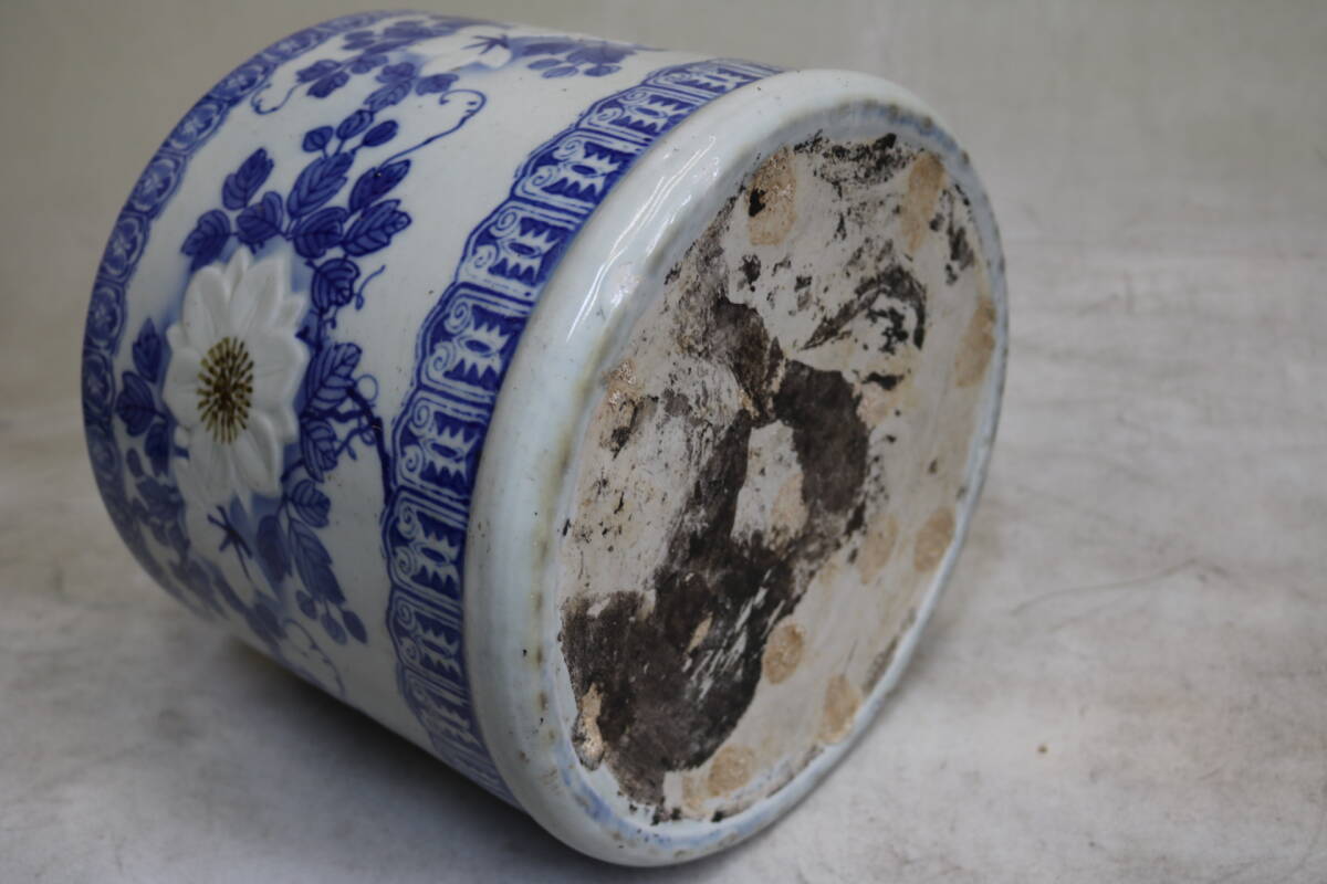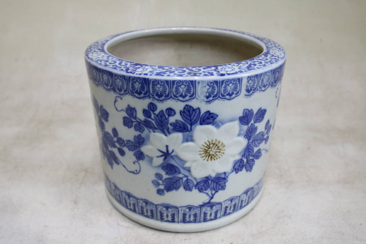 c153.瀬戸火鉢 《商品説明》 古い火鉢、花の図手焙り瀬戸火鉢です。
