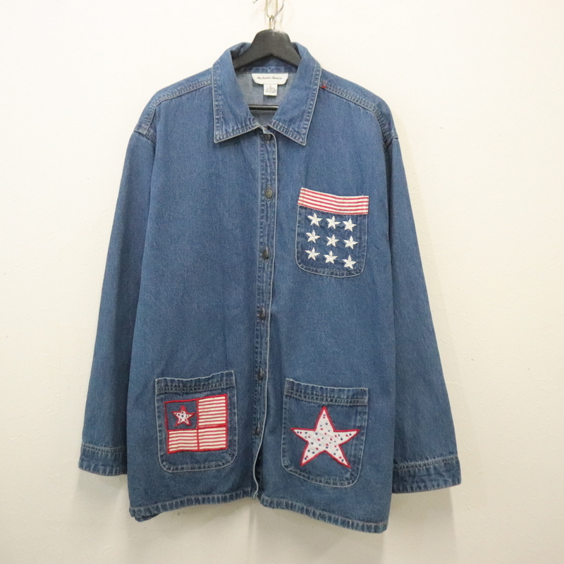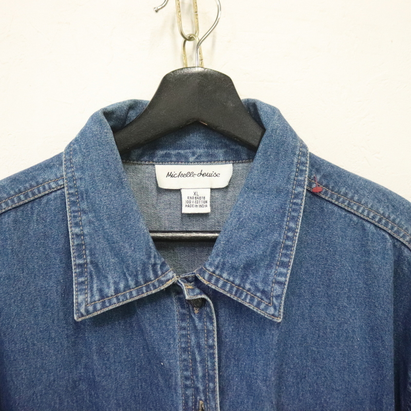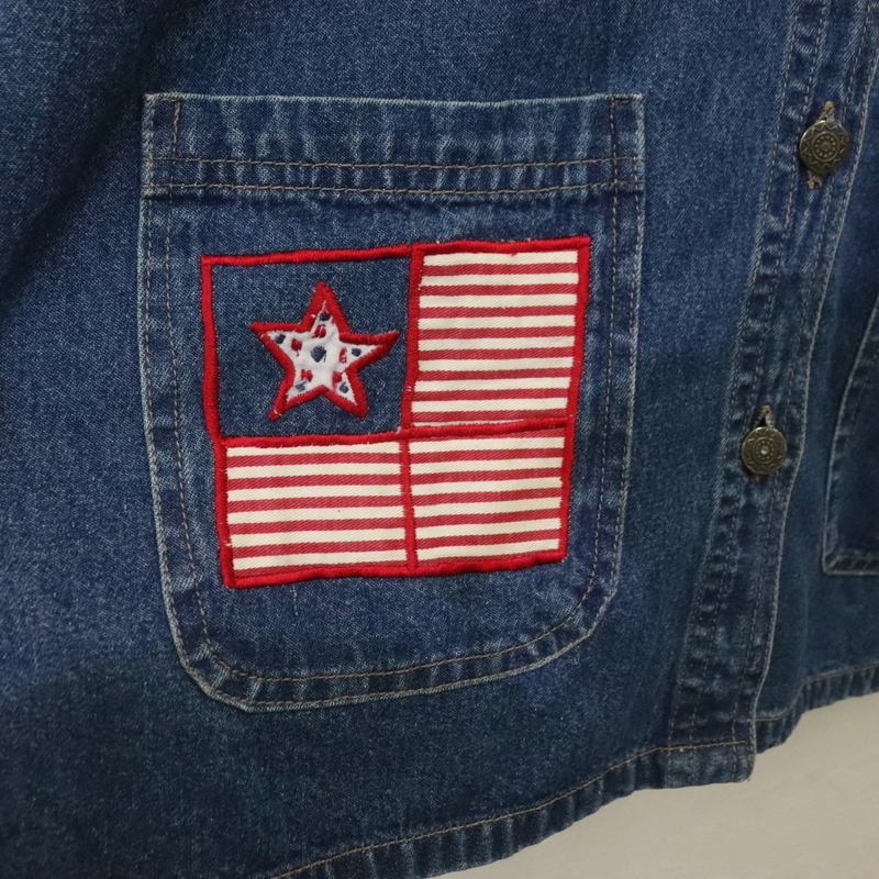 G829 90sビンテージ MichelleLouise デニムジャケット■1990年代製 表記XLサイズ レディース ブルー カバーオール 刺繍 アメカジ 古着卸