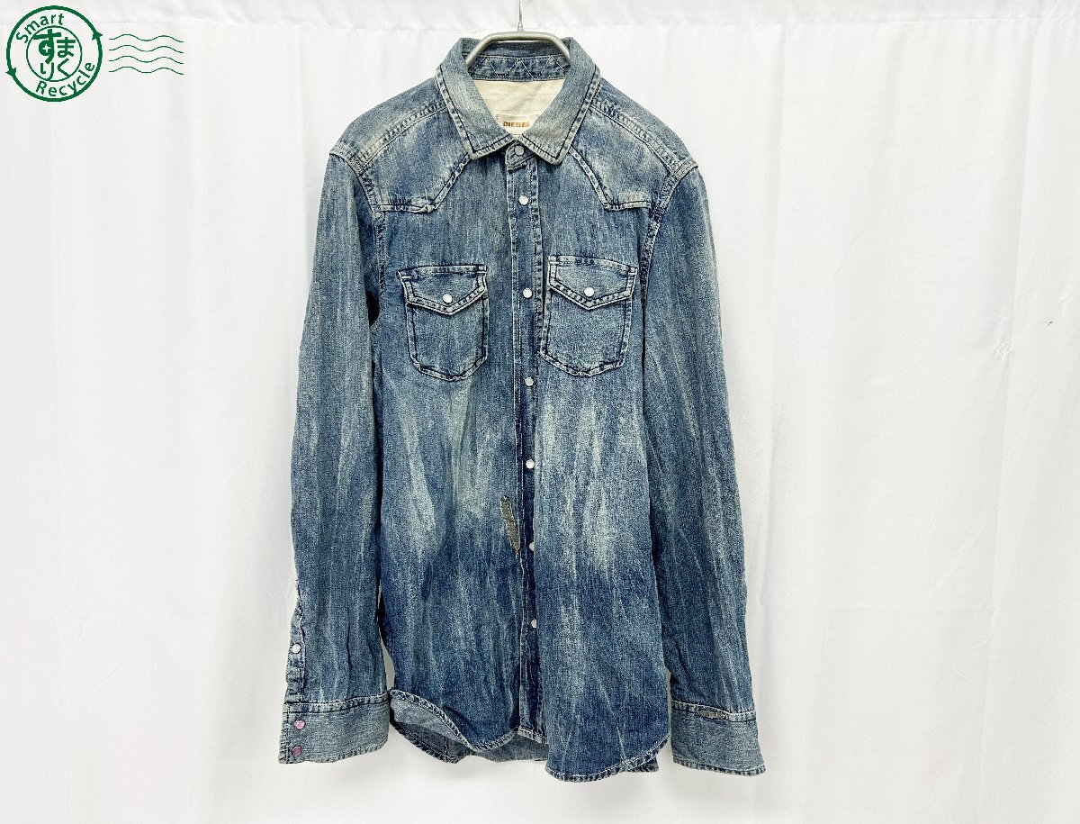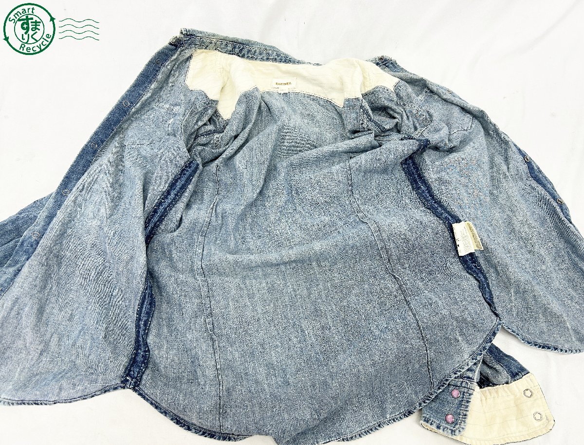 □ DIESEL ディーゼル デニムシャツ S ライトアウター ブルー系 レディース ダメージ加工 ファッション 中古品 古着 | |||