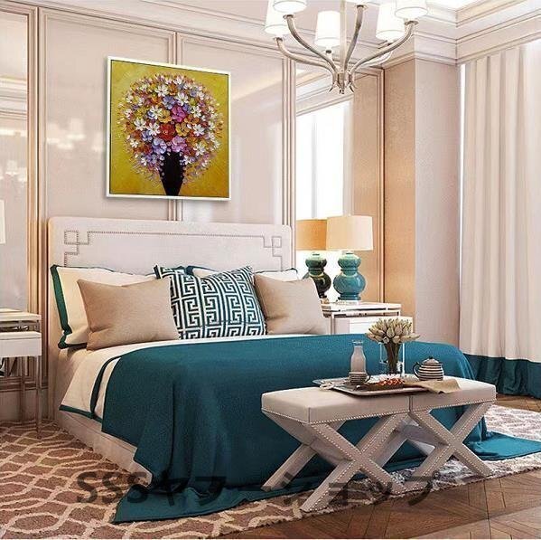 五行百花図:全体は明るくてあたたかい黄色を主調にして、組み合わせは純潔で上品な白色を代表して、神秘的で尊大な紫色、情熱的な赤い花。「百花盛放」は、豊かな生活を代表しています。風水学の角度によって部屋に百花図を併べても、人気を集め、金運を高め、縁結びを円満に幸せにすることができます。参考にしてくれてありがとう
