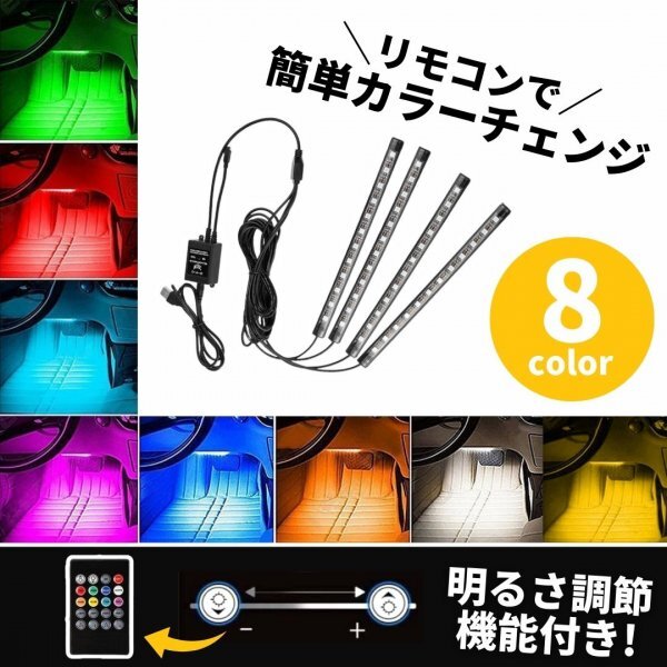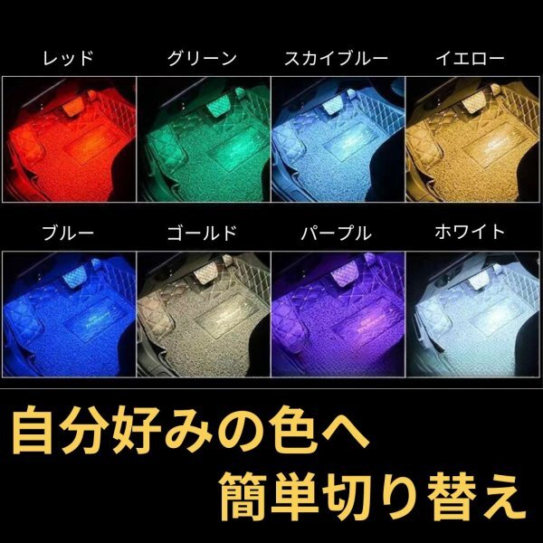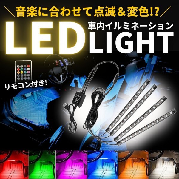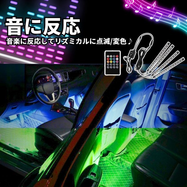 フットライト 音に反応 LED テープライト USB イルミネーション 車用 間接照明 車内 ドレスアップ サウンド RGB 照明 装飾 12V