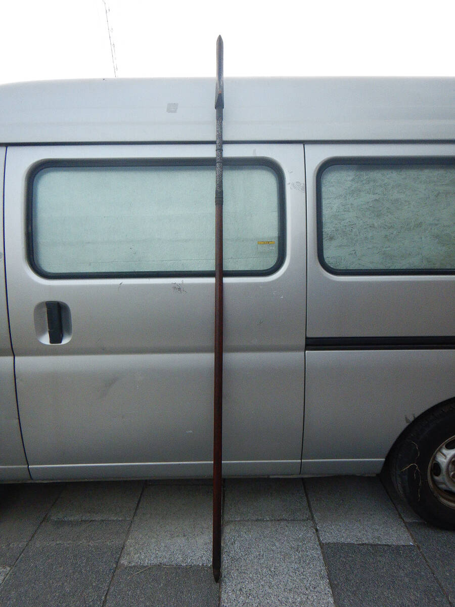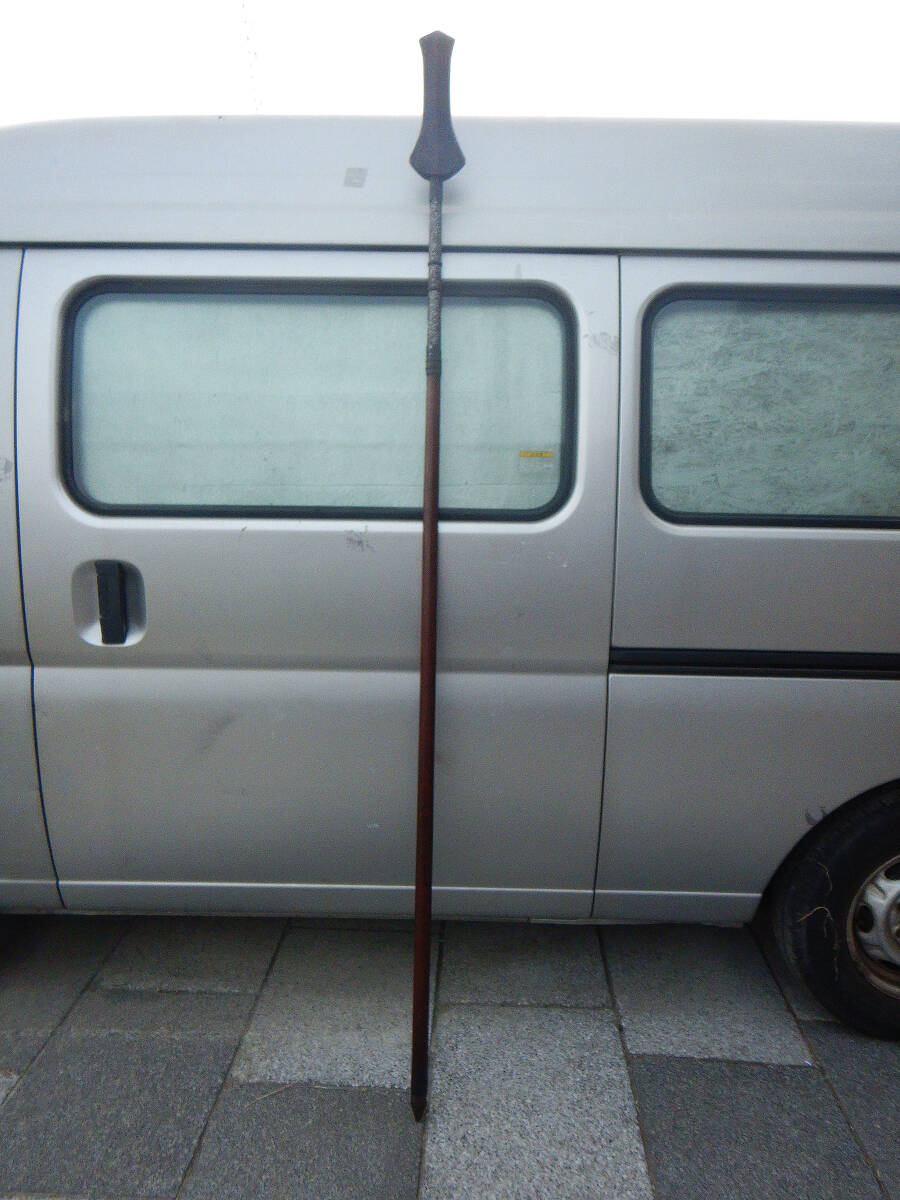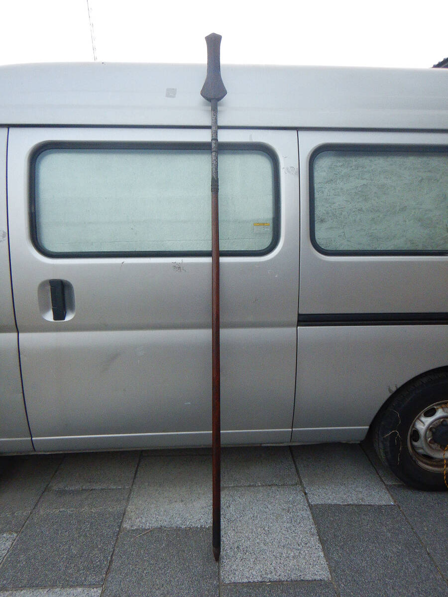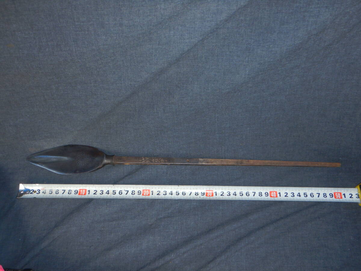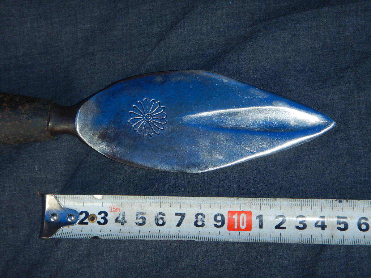 | 時代 銘:日本鍛冶惣辺藤原金道 裏銘:三品伊賀守 槍 長槍 樫の太い柄 石突 柄:206cm 穂先:14.8cm 穂に菊紋 江戸時代 日本刀 刀剣 刀 武具 登録証不要サイズ | |