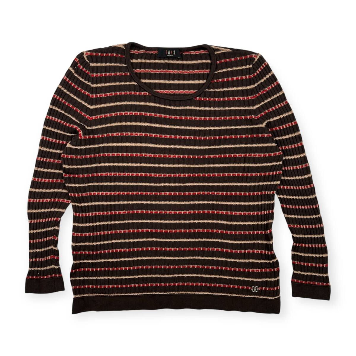 商品名 DAKS ダックス ボーダーデザイン リブ ウールニットセーター サイズ 44 /レディース/ダークブラウン 商品コード A250911a26 商品説明 ▼商品詳細 ━━━━━━━━━━━━━━ 【カラー】ダークブラウン 【サイズ】XL ※当店基準の目安サイズです。正式サイズはタイトルや商品画像の表記をご確認ください。 【実寸】(平置き計測) ・肩幅/裄丈:36.5cm ・着丈 :54.5cm ・身幅 :51cm ・袖丈 :55cm ※袖丈の記載がない場合は裄丈を採寸しています。 【素材】 ・表地:ウール系(羊毛・カシミヤ・アルパカ・モヘアを含む) ※詳しい素材は画像の品質タグをご確認ください。 見えづらい場合や印字の薄れがあることもございます。 気になる点はお気軽にお問い合わせください。 【その他詳細】 付属品などはございません。 【コンディション】 ・ランク:B 商品状態は良好です。品タグにネーム入りです。コンデションについての詳細は画像をご参照ください。 ▼コンディション基準 ━━━━━━━━━━━━━━ 【未使用品】新品または新品同様のもの 【A】目立った汚れやダメージがない、またはあっても目立たないきれいなもの 【B】着用感が少なく、汚れやダメージが気にならないもの 【C】着用感があり、汚れやダメージが見られるもの 【D】汚れやダメージが目立つもの ━━━━━━━━━━━━━━ ※ご購入前に必ず「SHOPPING GUIDE」や「ストア情報」をご確認いただき、 内容にご納得のうえでご注文をお願いいたします。