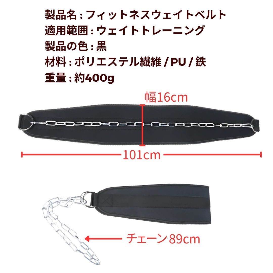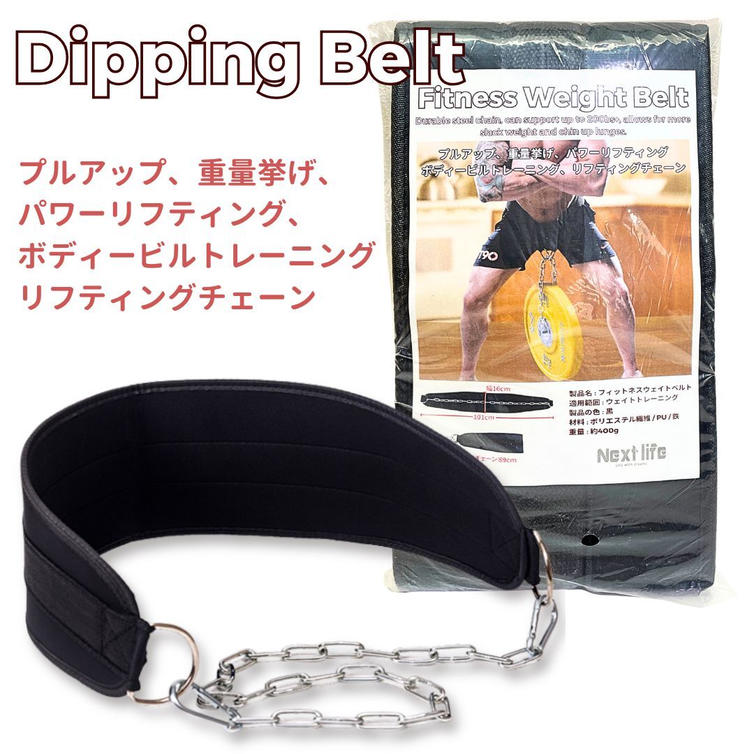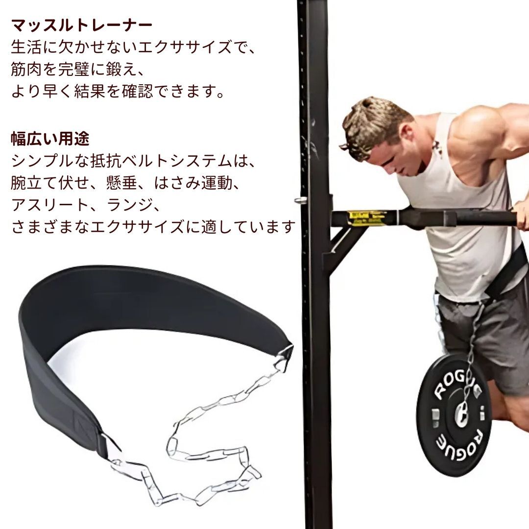 ご覧頂きありがとうございます。 フィットネス ディッピングベルト(加重チェーン付き) ディッピングベルト・筋トレ ベルト・ウエイトトレーニング ベルト・加重ベルト チェーン プルアップ ベルト・チンニングベルト・パワーリフティング ベルト 懸垂 ベルト チェーン付き・フィットネス アクセサリー・筋トレ 男性用 女性用 ベルト 【懸垂・ディップスをレベルアップする加重ベルト】 プルアップやディップスなどのトレーニングを より高強度にするために最適な**ディッピングベルト(加重チェーン付き)**です。 最大耐荷重約200lbs(約90kg)まで対応可能な強化スチールチェーンを採用し、 安全かつ安定したトレーニングをサポートします。 【商品特徴】 ・チェーン付きでウエイトの装着が簡単! ・プレートやケトルベルを通すだけで、すぐに加重トレーニング可能。 ・幅広パッド設計で腰の負担を軽減! ・16cm幅のベルトが腰をしっかりサポート。背中や骨盤への負担を分散 ・高強度ナイロン&PU素材使用! ・通気性がよく、汗をかいても快適なトレーニングを実現。耐久性も◎ ・男女兼用・フリーサイズ対応! ・チェーンの長さ調整も可能で、様々な体格に対応します。 【こんなトレーニングに最適】 ・懸垂(プルアップ) ・ディップス ・チンニング ・ベンチディップ ・ウエイト加重トレーニング ・筋力強化・ボディメイク 加重するだけで、筋肉への刺激が劇的に変わる! ディッピングベルトで、ワンランク上のトレーニングを始めましょう。 【仕様】 サイズベルト全長:約101cm/幅:約16cm、チェーン長さ:約89cm 重量約400g 素材ポリエステル繊維、PUレザー、鉄(チェーン部分) 耐荷重約200lbs(約90kg)まで対応 カラーブラック(ユニセックスデザイン) 用途懸垂、ディップス、チンニング、ベンチディップ、加重トレーニング 特徴耐久性チェーン付き、しっかり固定、男女兼用、様々な体格にフィット >