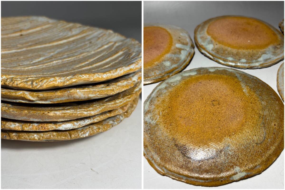 勝尾青龍洞の作品保証致します。こちらの品物は青龍洞の親類の方より譲り受けた品物です。金銭に困った時に足しにすればよいと数点ずつ窯元より頂いた品物のようです。箱はありません。品物のみです。島根県からのうぶだし品です。直径約15.5㎝、高さ約1.5㎝の盛り皿5枚です。