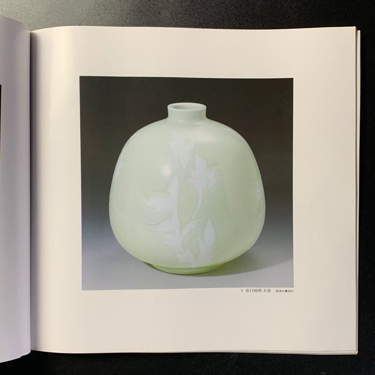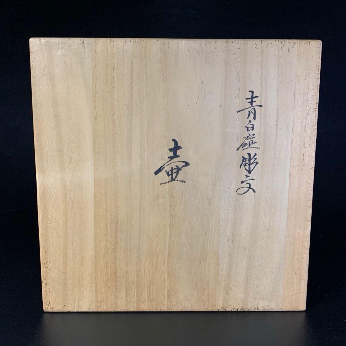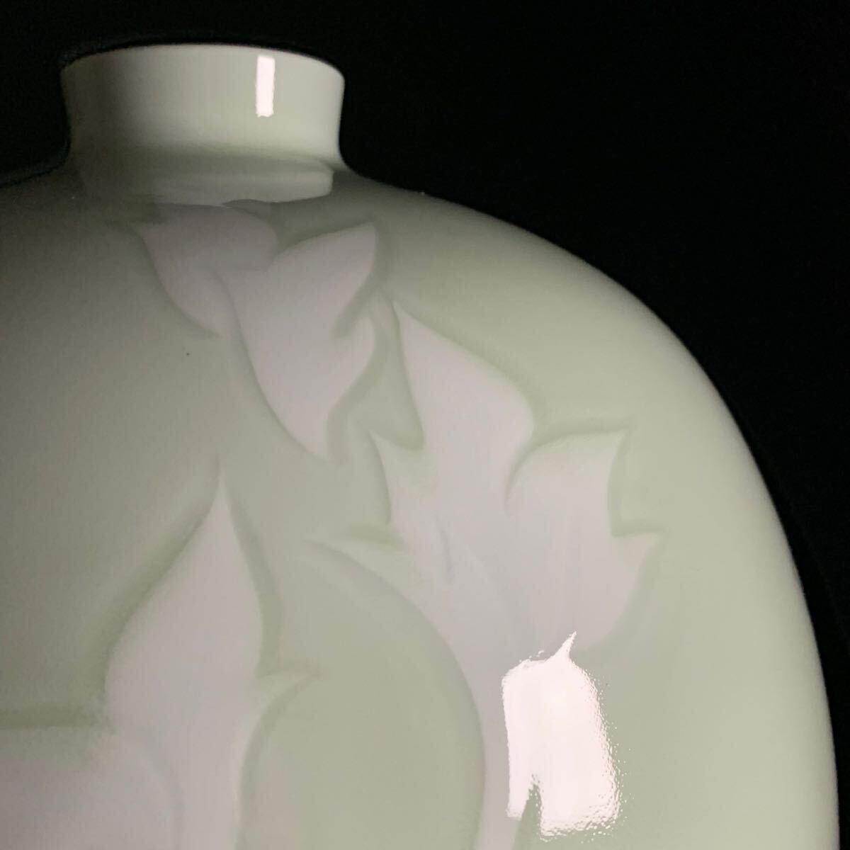【人間国宝 井上萬二 作】個展出展作品 図録掲載品 本人作 高さ約30㎝の大型 『青白磁彫文 壷』 共箱 図録付