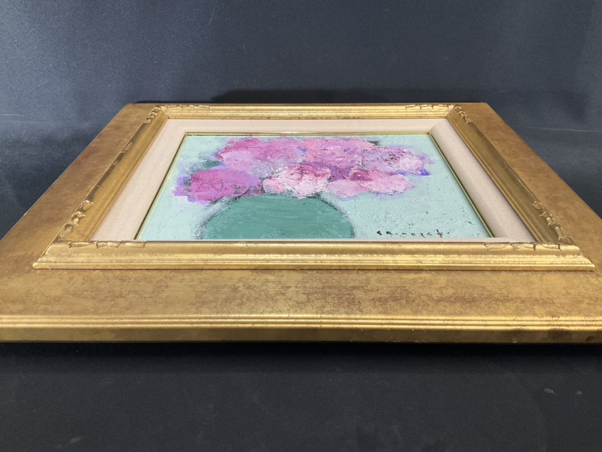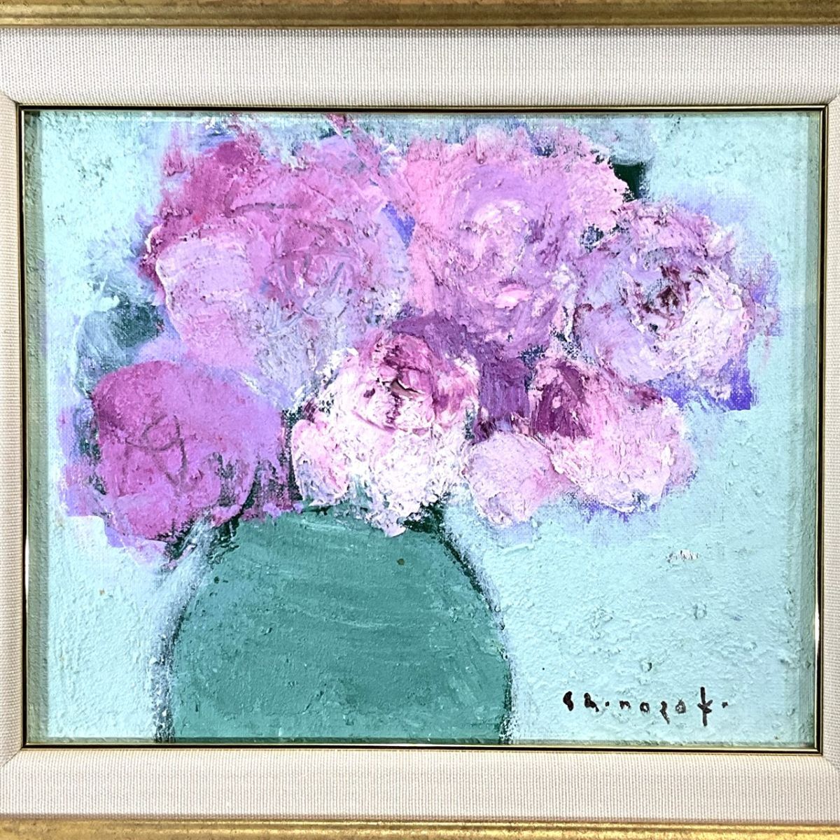 真作■油彩■篠崎晴夫■花瓶の花■可愛い逸品■実力作家・日美連理事・日本選抜美術展特選■額付絵画