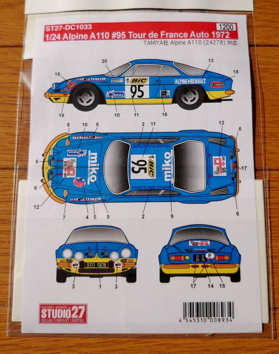 | 商品名稱 : | 1/24 アルピーヌ A110 ツールドフランス 1972 デカールセット(スタジオ27+輸入デカール) |
