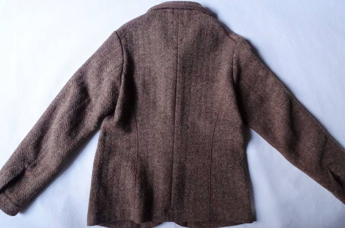 45Rのシェットランドウールのジャケット。2019A/Wの定価68200円。リアルシェットランドウールのジャケット。シェットランド諸島の雨風に負けない羊だからこその温かさと軽やかさが魅力。ヘリンボ—ン地を使用することで、柄の見え感がクリアになりすぎず、奥行きのある色表現が大人っぽい1着。表面には程良く毛羽感があり、秋冬らしい暖かみも感じられます。普段使いもしやすいシンプルなディティールで、インナーやアウターとの組み合わせ次第でロングシーズン着られる使えるアイテム。