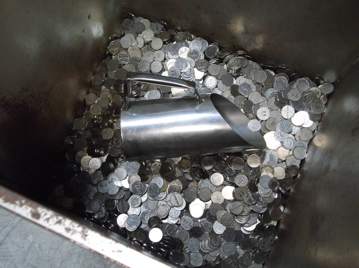 25セントメダル 絵柄はバラです 約12000枚 メダルストッカー メダルスコップ付 引き取り限定